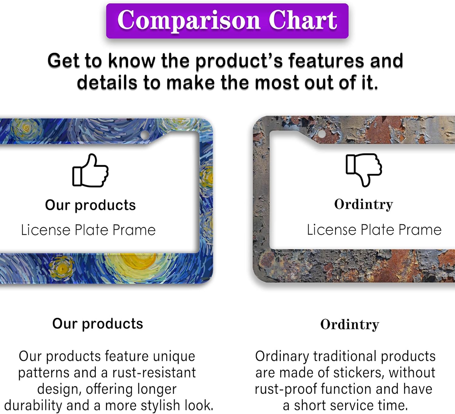 - FUNNY DESIGN: Featuring a unique and customized design, this license plate frame creates an eye-catching and bold statement for your vehicle. Not only does it add a touch of personality to your car, but it also makes for a great holiday gift, souvenir, or decorative piece for family, friends, and colleagues. Elevate your vehicle's style while sharing a laugh!