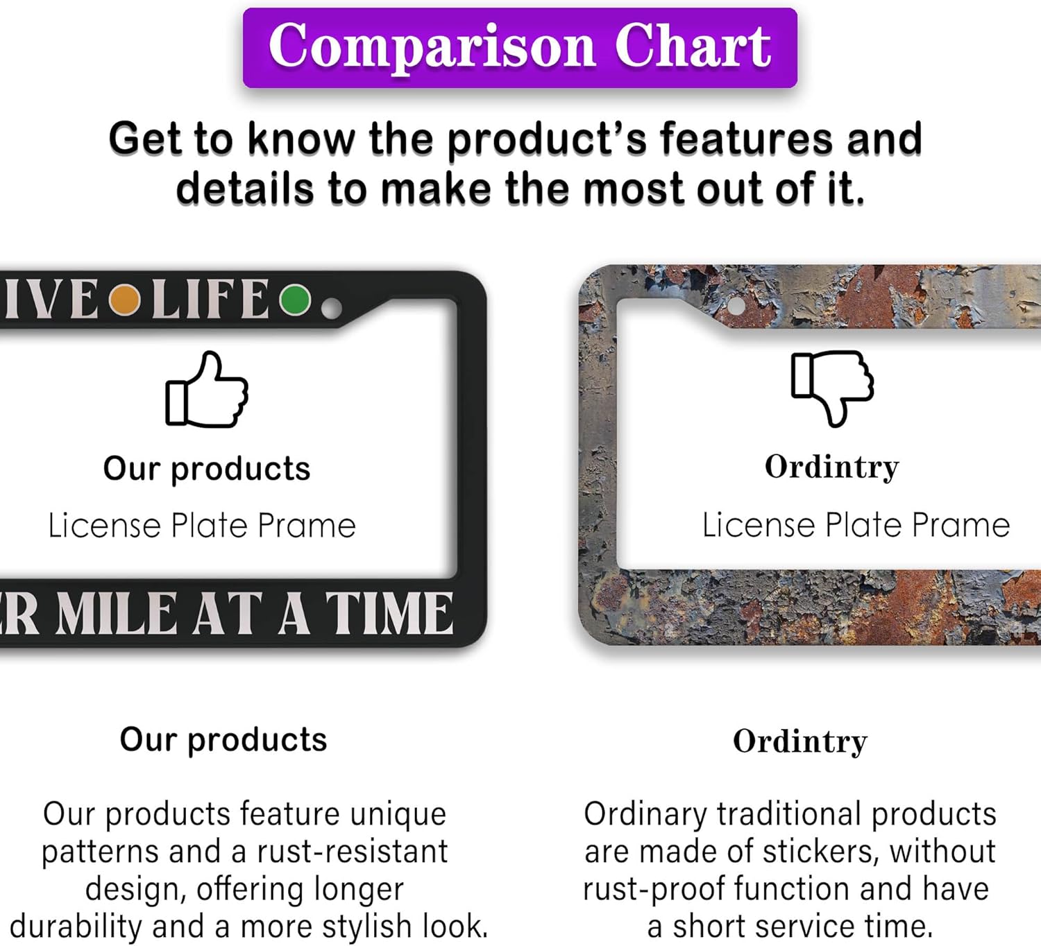 - FUNNY DESIGN: Featuring a unique and customized design, this license plate frame creates an eye-catching and bold statement for your vehicle. Not only does it add a touch of personality to your car, but it also makes for a great holiday gift, souvenir, or decorative piece for family, friends, and colleagues. Elevate your vehicle's style while sharing a laugh!