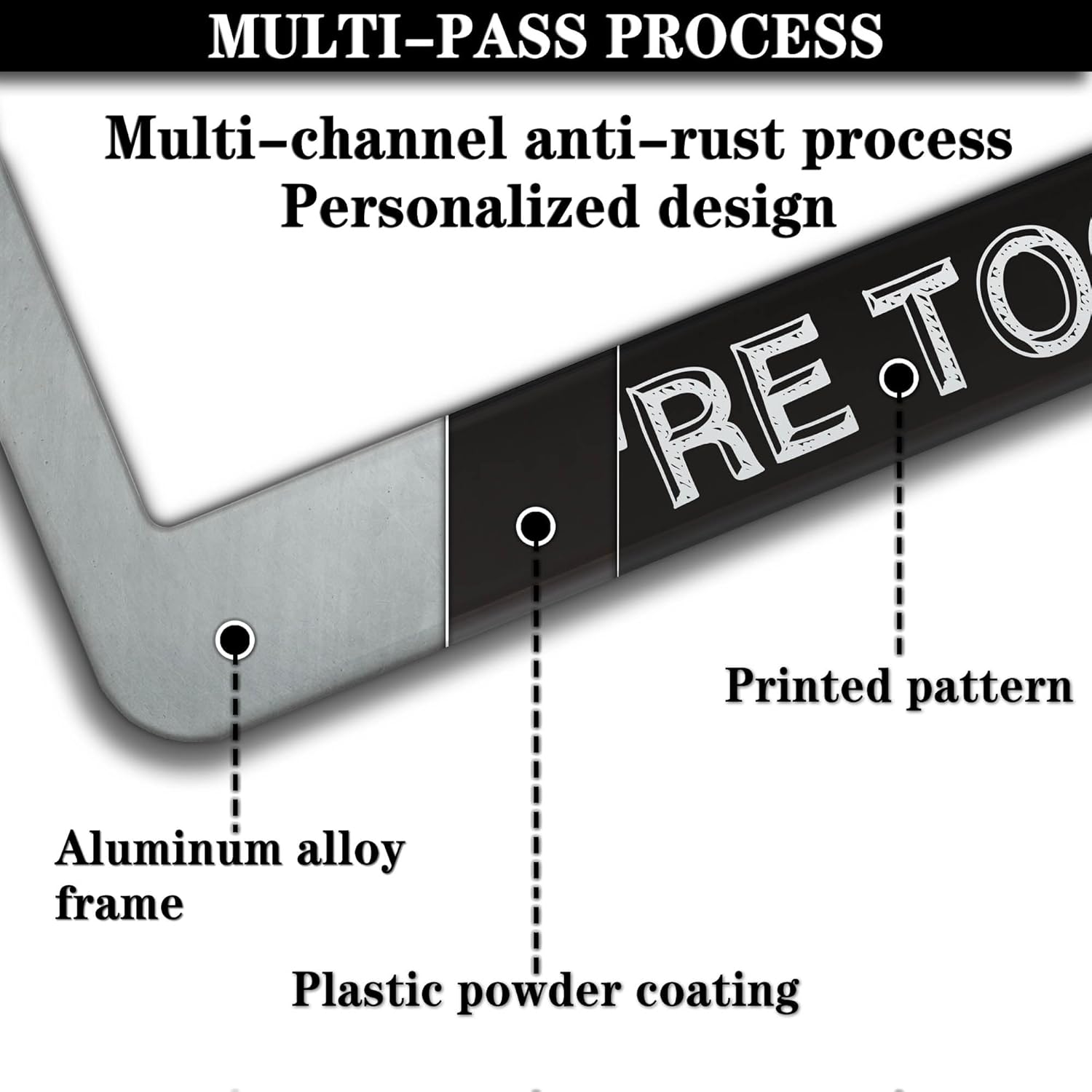 - ALUMINUM FRAME: This License Plate Frame is crafted from high-quality aluminum that is resistant to corrosion, rust, and harsh weather conditions. Its rugged reliability design ensures a long lifespan, making it capable of withstanding car washes and extreme weather, providing you with a reliable and stylish solution for your vehicle.