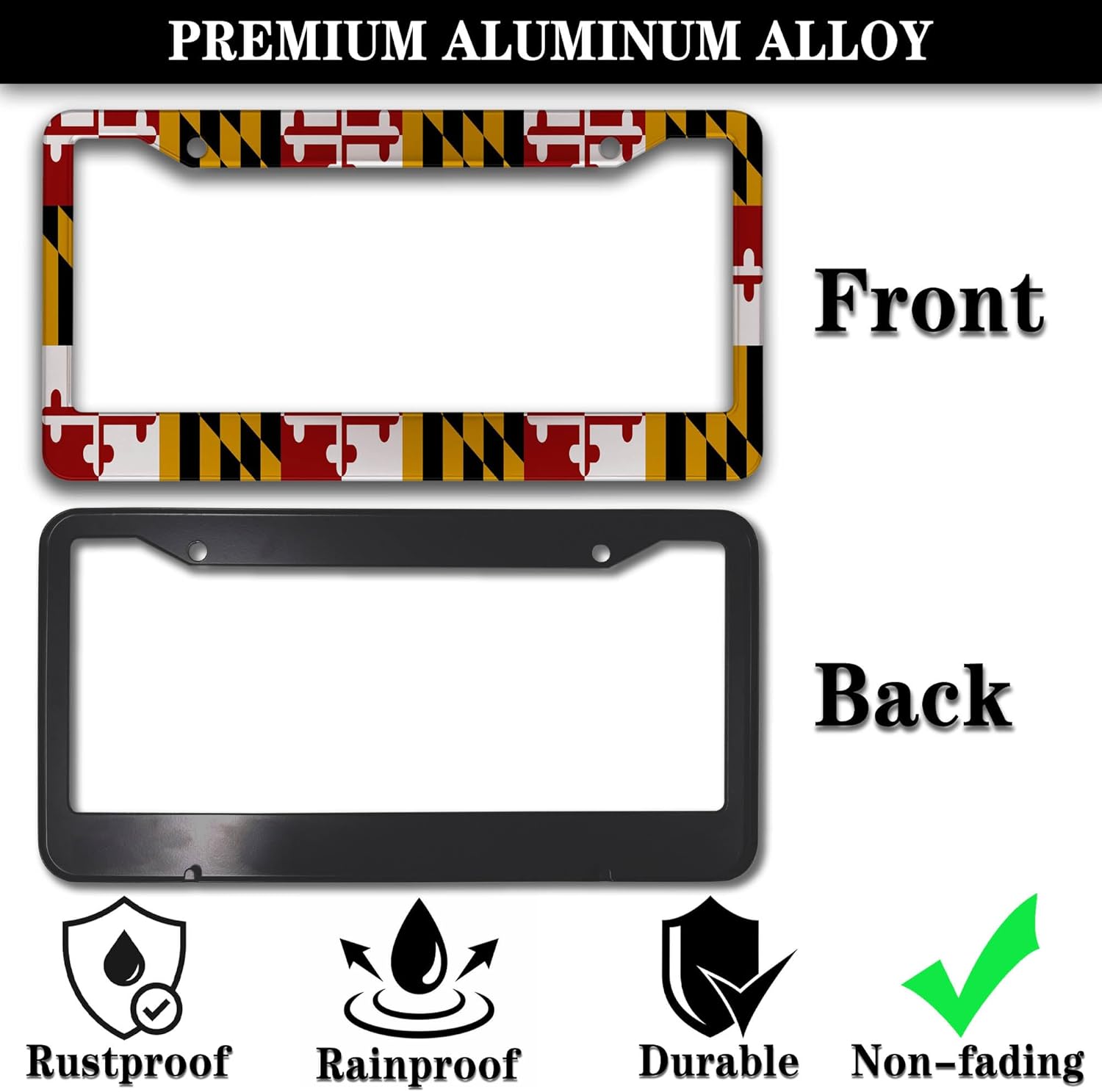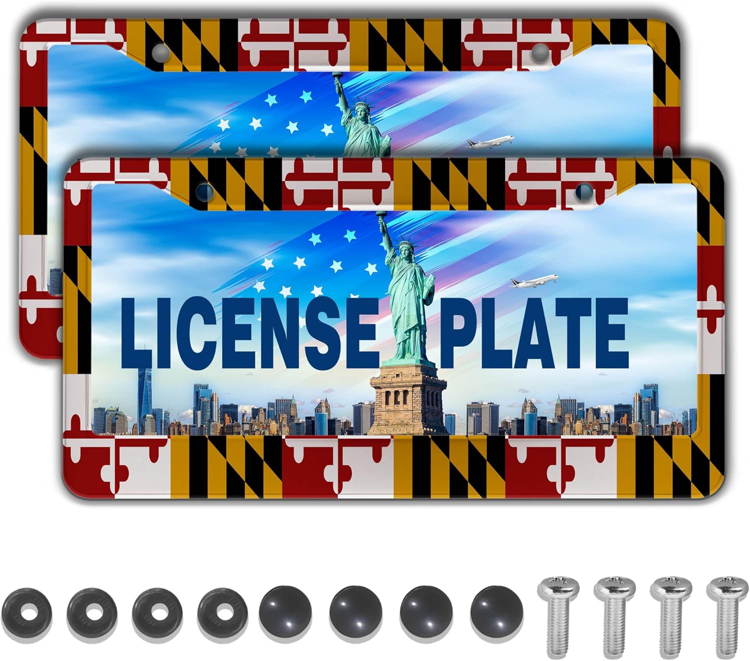Front License Plate Bracket Multicolor License Plate Frames Flag of Maryland Universal Aluminum Car Accessory 2 Pack with Screw Covers Set