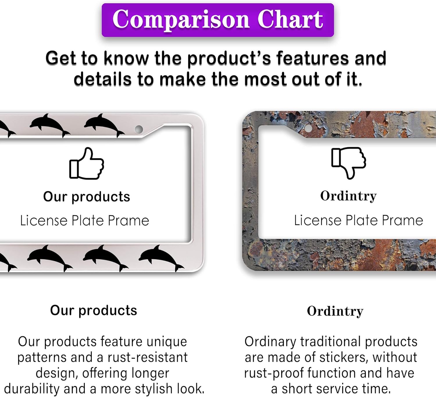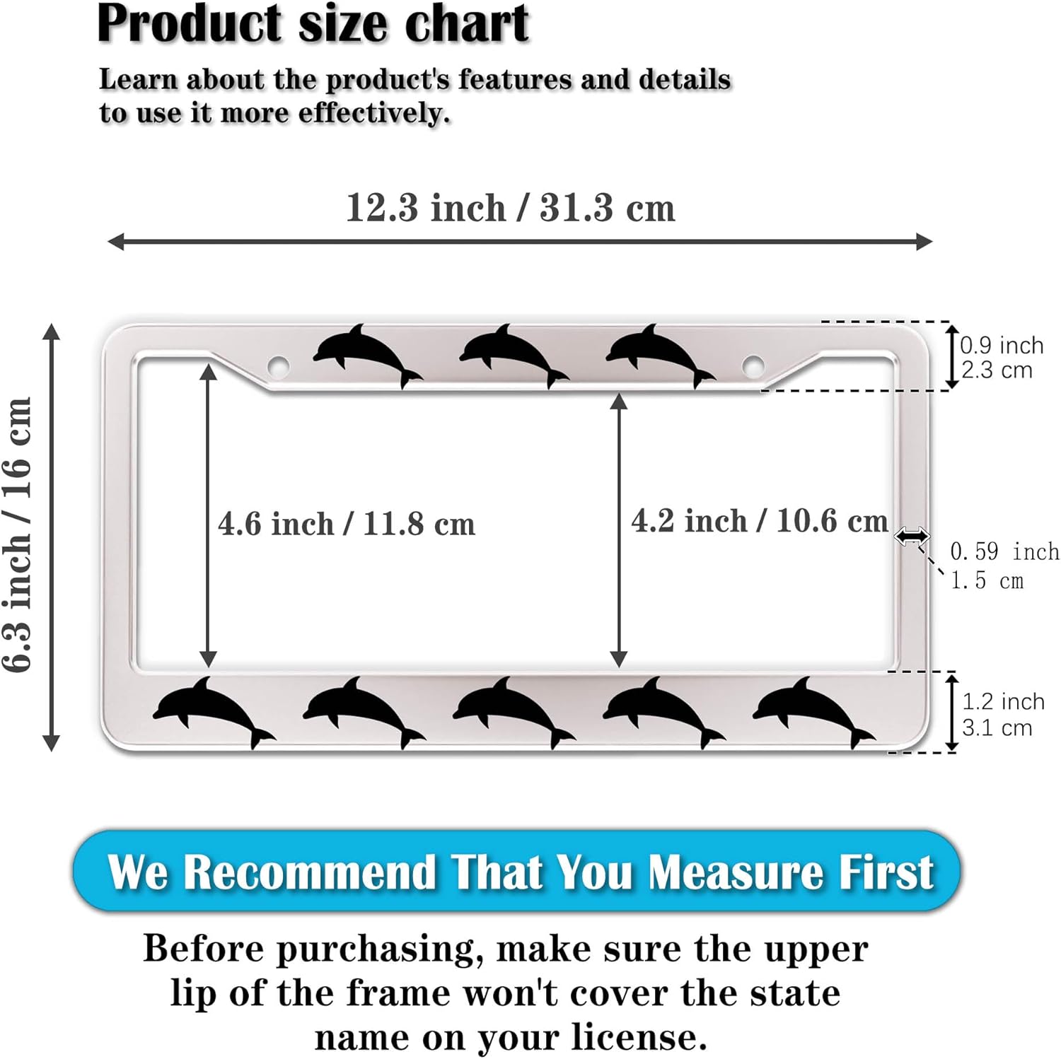License Plate Frames for Women Black and White License Plate Protector for Men Dolphin Universal Aluminum Car Accessory 2 Pack with Screw Covers Set
