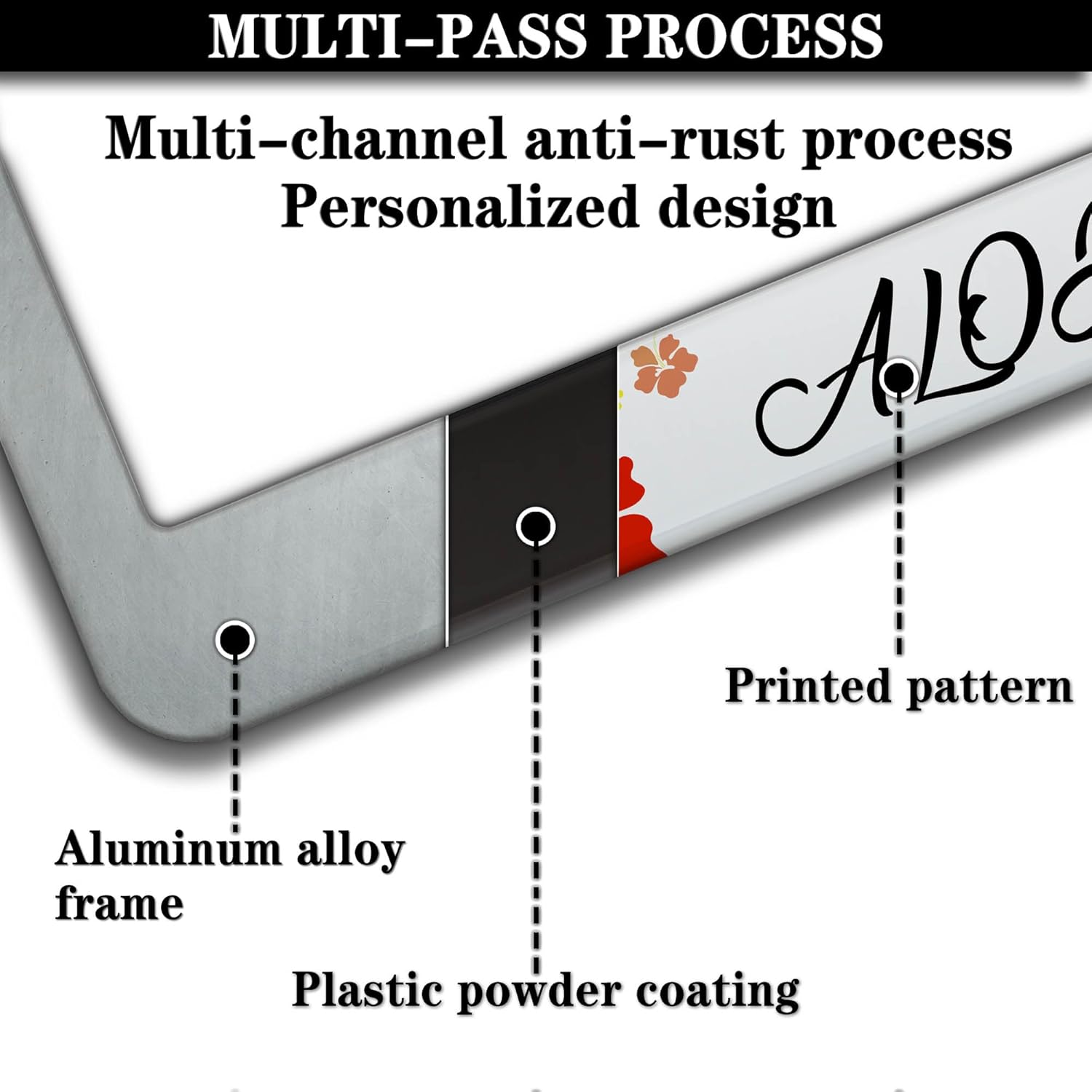 License Plate Frames License Plate Bracket for Women Aloha Hawaii Hibiscus Floral Flowers Colorful Universal Aluminum Car Accessory 2 Pack with Screw Covers Set