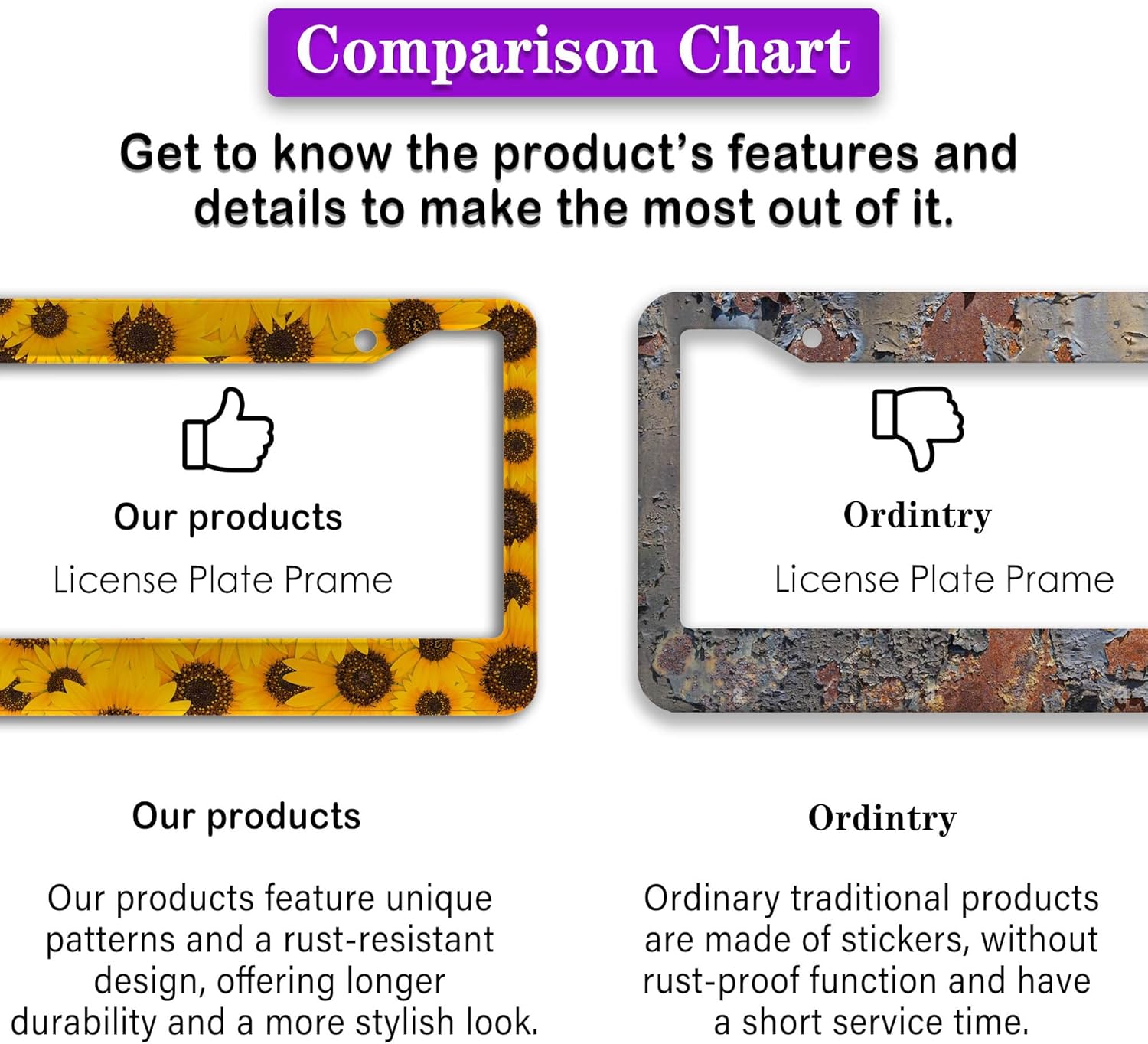 License Plate Protector for Women Yellow License Plate Frames for Men Sunflower Aluminum Metal Car Accessory 2 Pack with Screw Covers Set