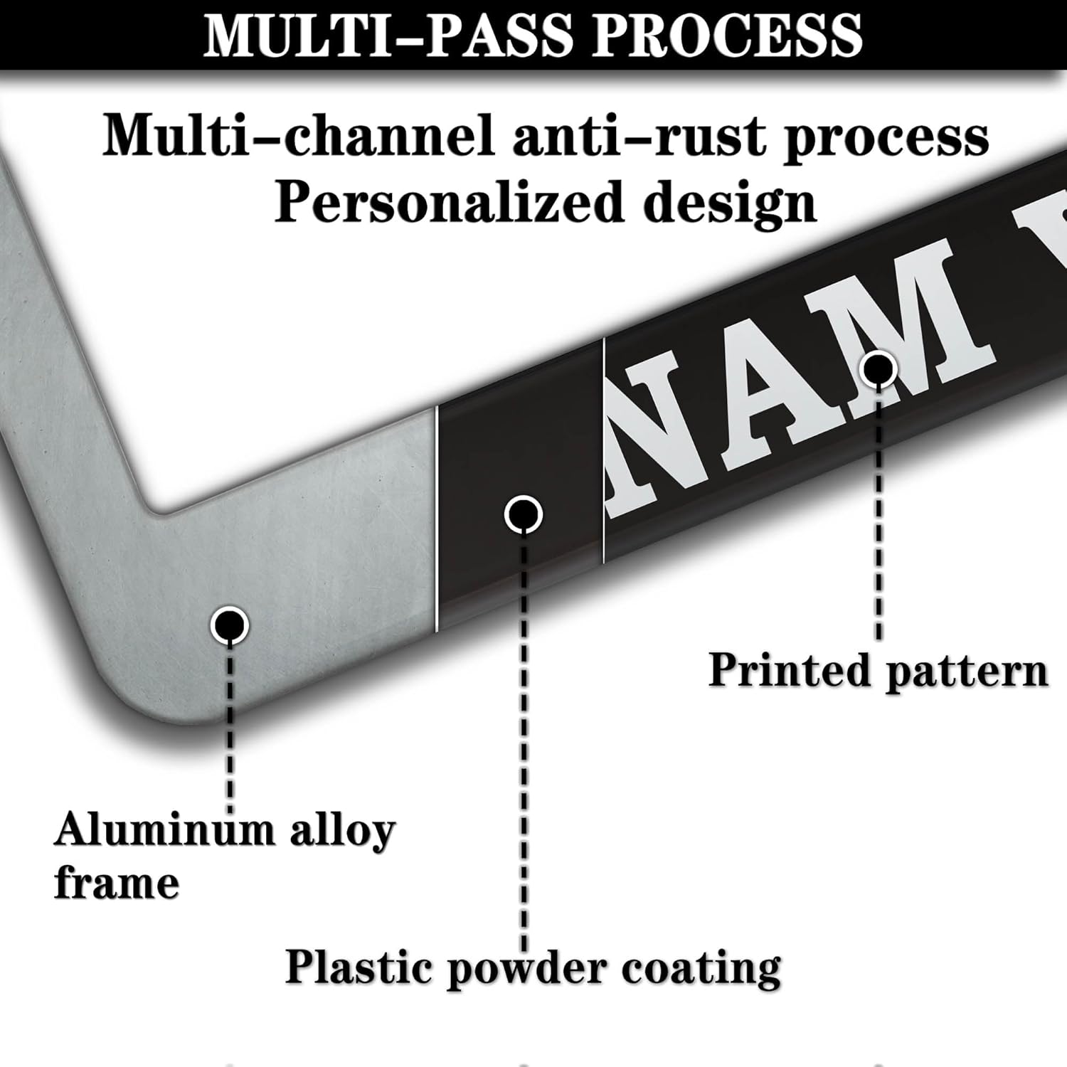 License Plate Cover Black and White License Plate Frames Vietnam Veteran Universal Aluminum Car Accessory 2 Pack with Screw Covers Set