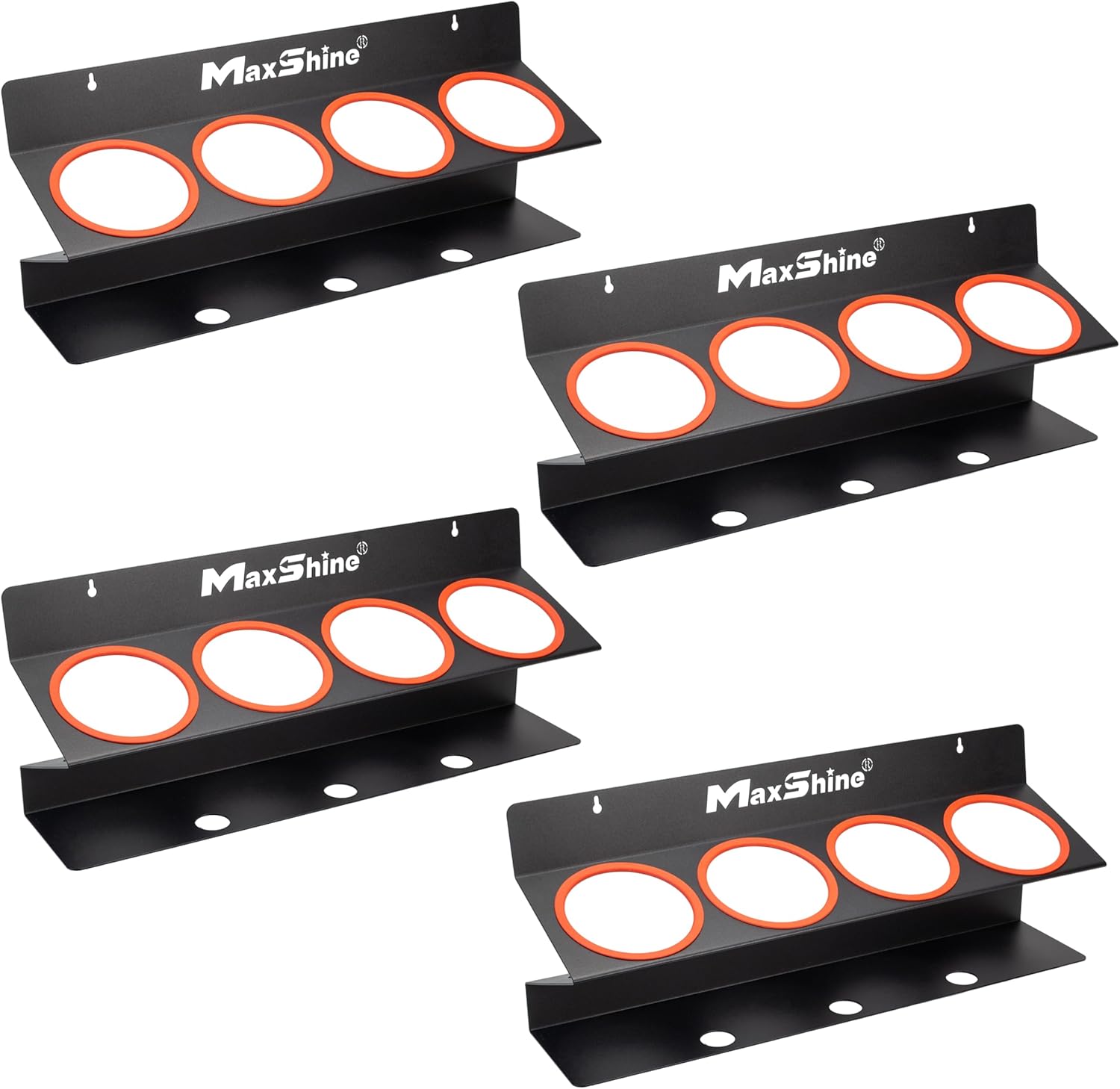 Maxshine Universal 4 Pack Spray Bottle Holder (16oz/34oz) - Holds 7 IK Trigger Sprayers with 3 Small Holes, Sturdy & Lightweight Wall-Mounted Organizer for Detailing Accessories, Easy to Install
