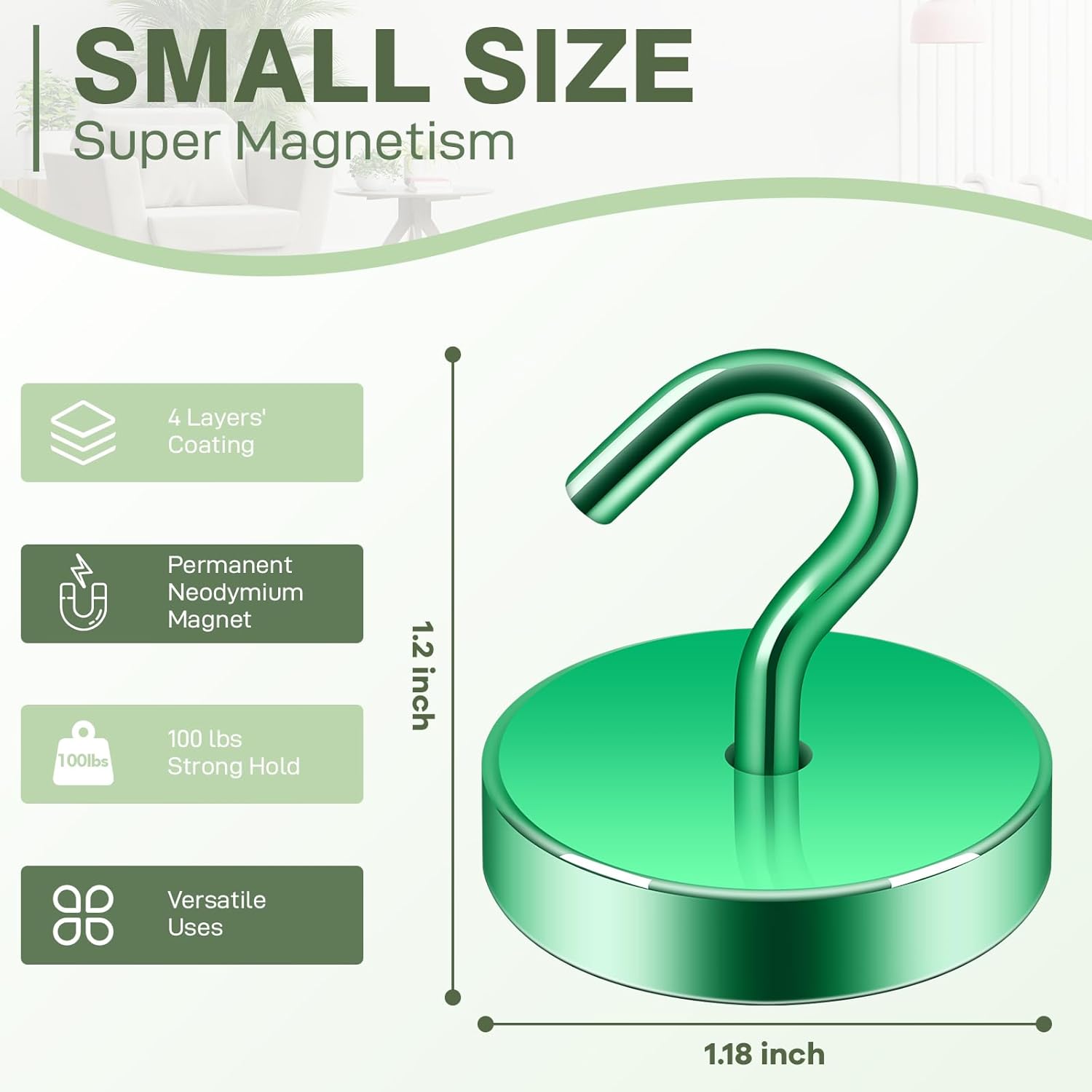 Neosmuk Magnetic Hooks, Cruise Ship Essentials, 100lb+ Heavy Duty Magnetic Hooks for Cruise Cabins, Refrigerator, Grill, Hanging, and Travel | Extra Strong Must-Haves Magnet Hook,Green