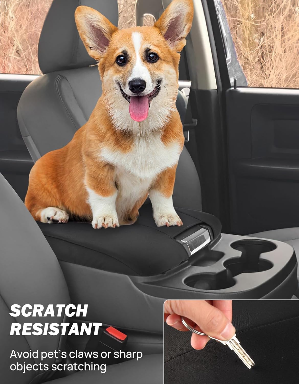 - FULL PROTECTION - Wide enough to cover the entire top and side of the console to provide full protection. Anti-scratch, effectively avoid dog paws, fingernails, or key scratches, avoid pet footprints/saliva, sweat arm, and dirt soil the armrest