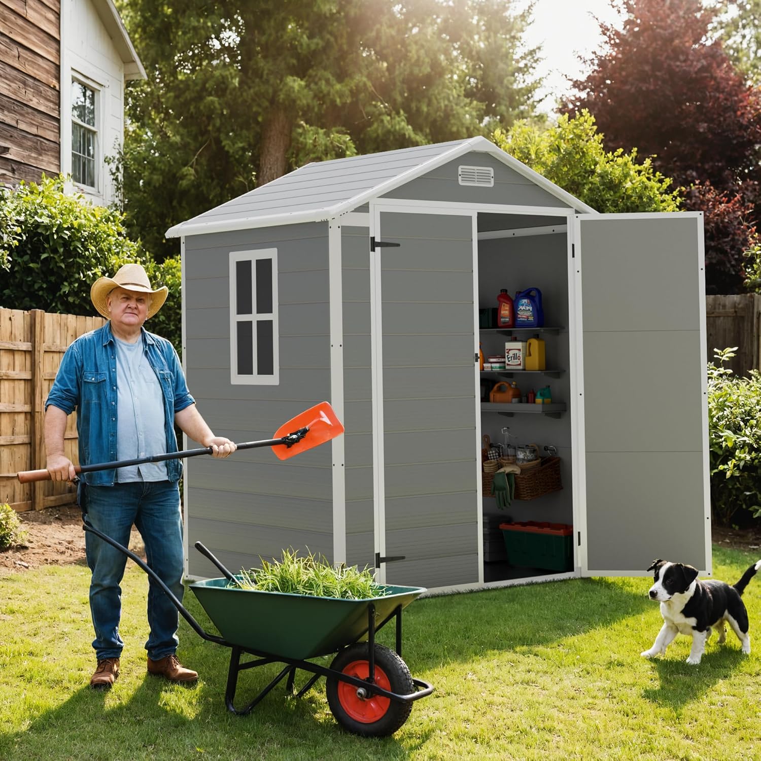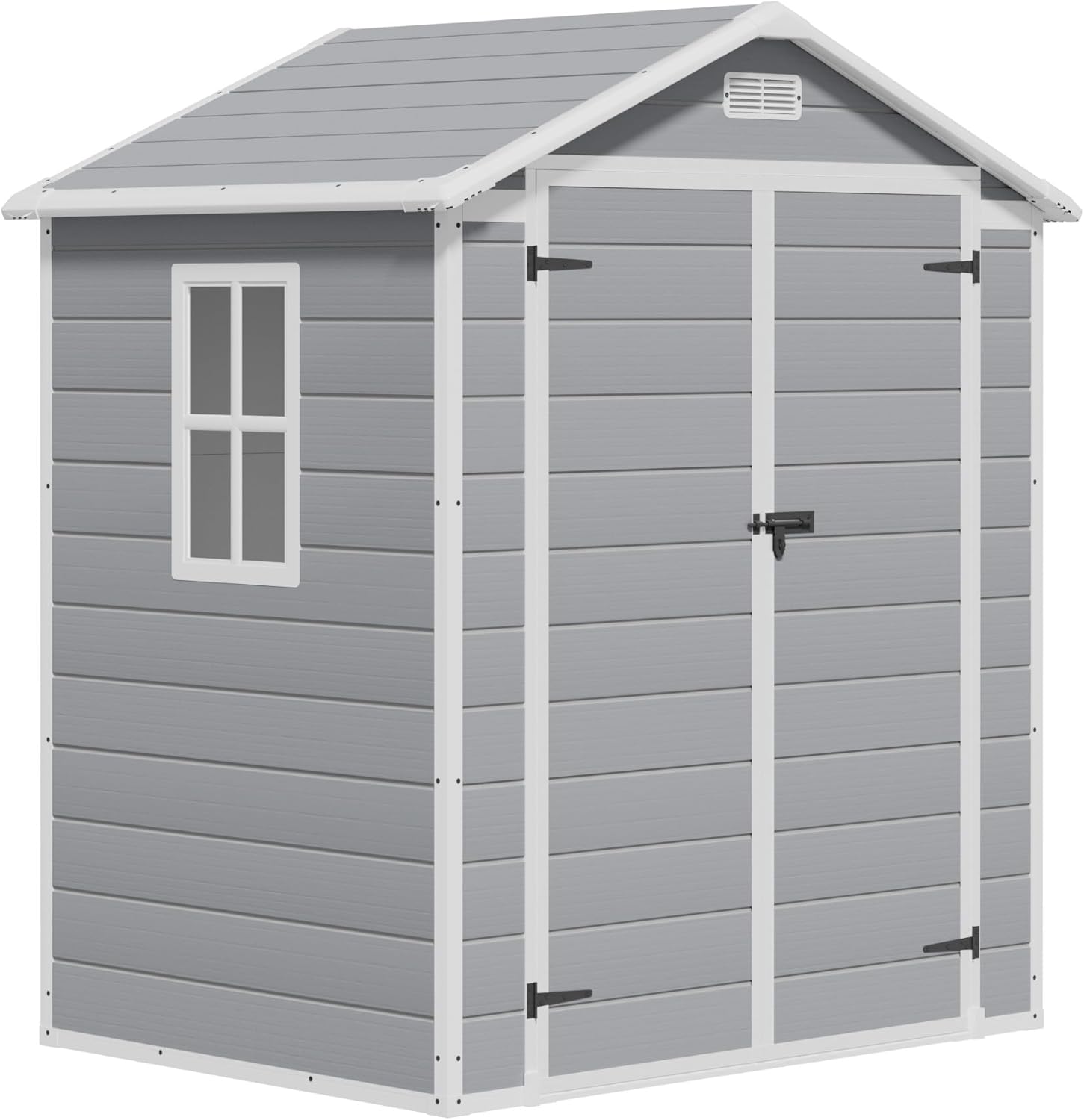 - SPACIOUS 6'X4' RESIN SHED: Greesum outdoor shed is available in two sizes to meet your storage space needs. It can store items you don't need for a while, such as bicycles, garden tools, toys, so that you can reap the benefits of a tidy and bright yard; it can also be used as a pet shed.