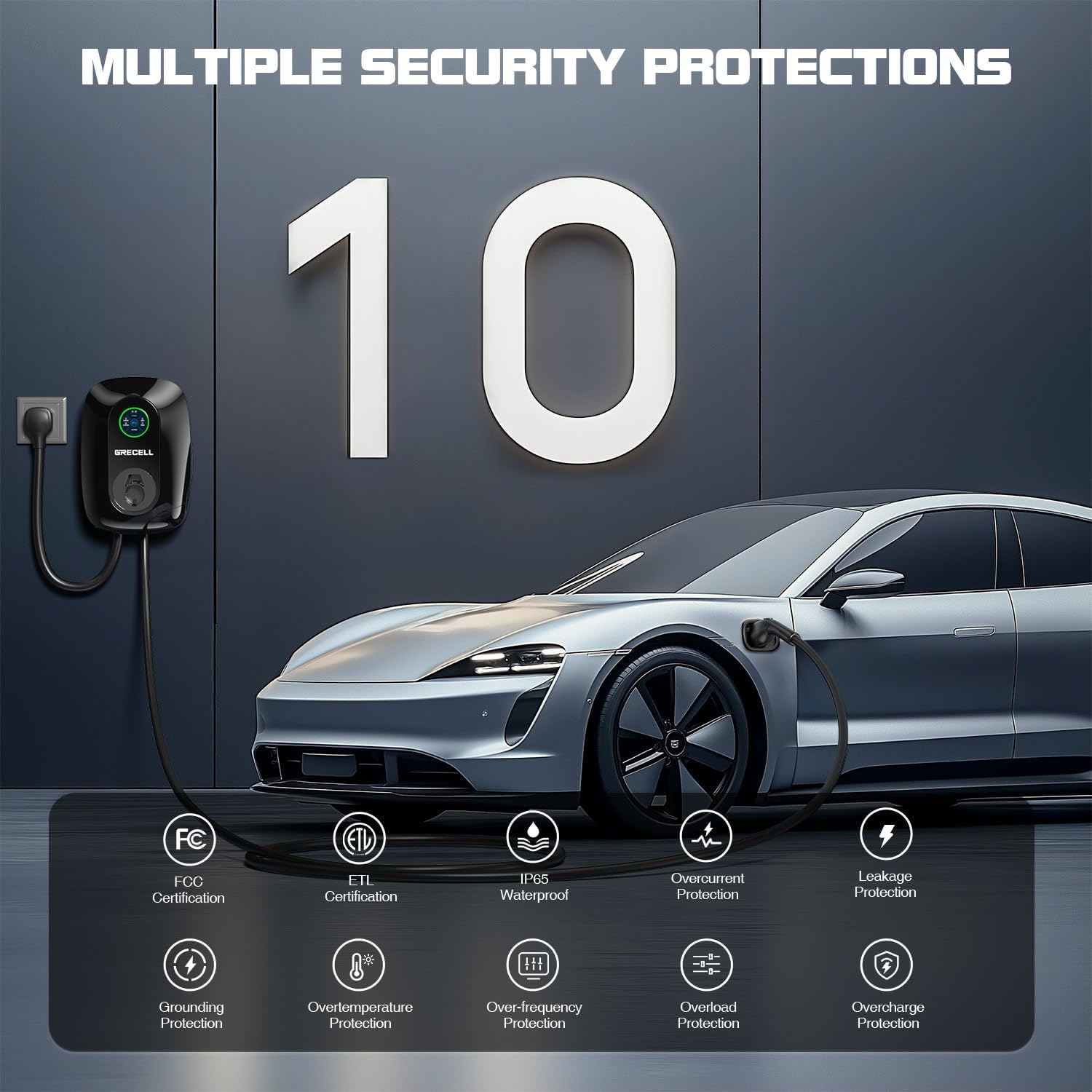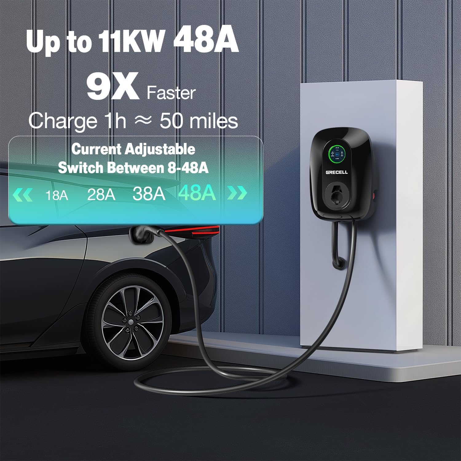 - 【Level 2 EV Wall Charger】GRECELL Level 2 Wall Charger is designed to make EV charging faster and more efficient. Extra-long 25FT charging cord fits in most garages and driveways, giving you more freedom to charge your car at home or outdoors