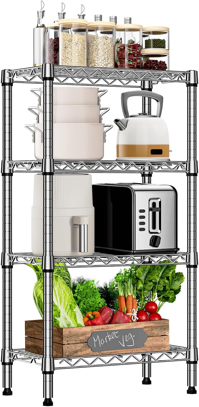 1000 lbs 4 Tier Shelf Metal Storage Shelves Wire Rack Closet Organizers with PP Board for Garage Kitchen Bathroom Laundry Chrome 11.8" D x 21.7" W x 39.5" H