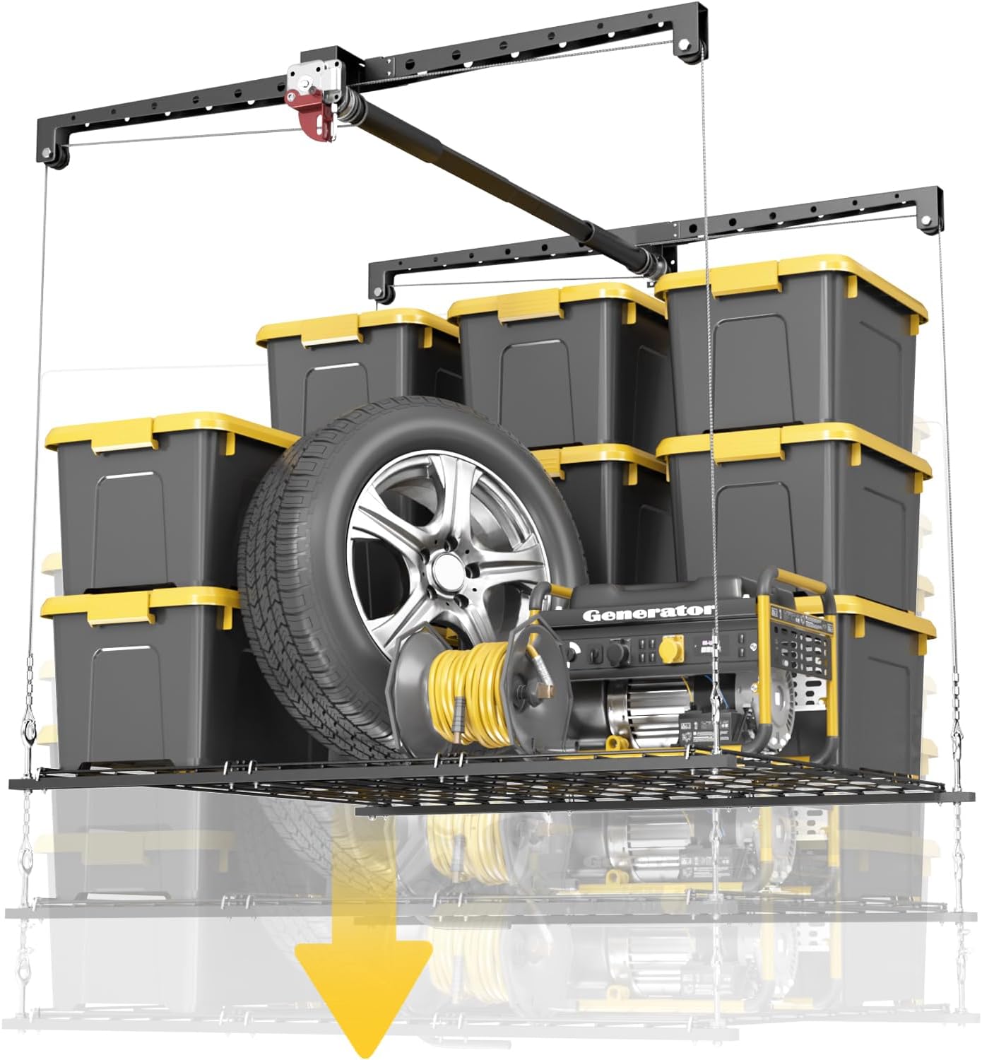 - Innovative Overhead Storage for Easy Access: Say goodbye to ladders and inconvenient storage shelves! KOKORACKER overhead garage storage lift provides quick and effortless access to your items, streamlining your garage organization and simplifying storage tasks.