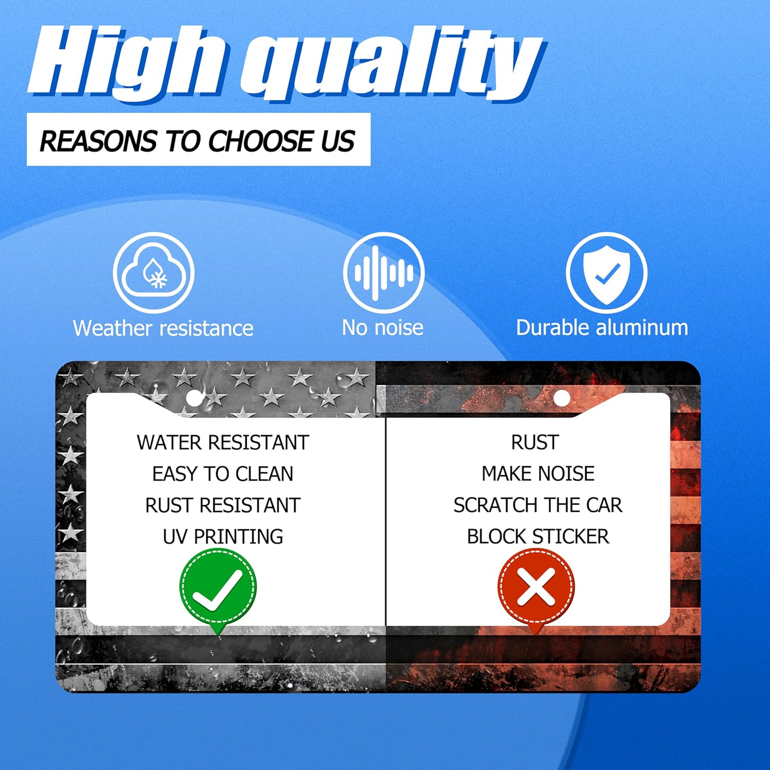 Grey Black American Flag License Plate Frame Vintage USA Flag License Plate Stainless Steel Funny License Plate Holder Patriotic Car Accessory Car Decoration 12.3" x 6.3"for Men Women