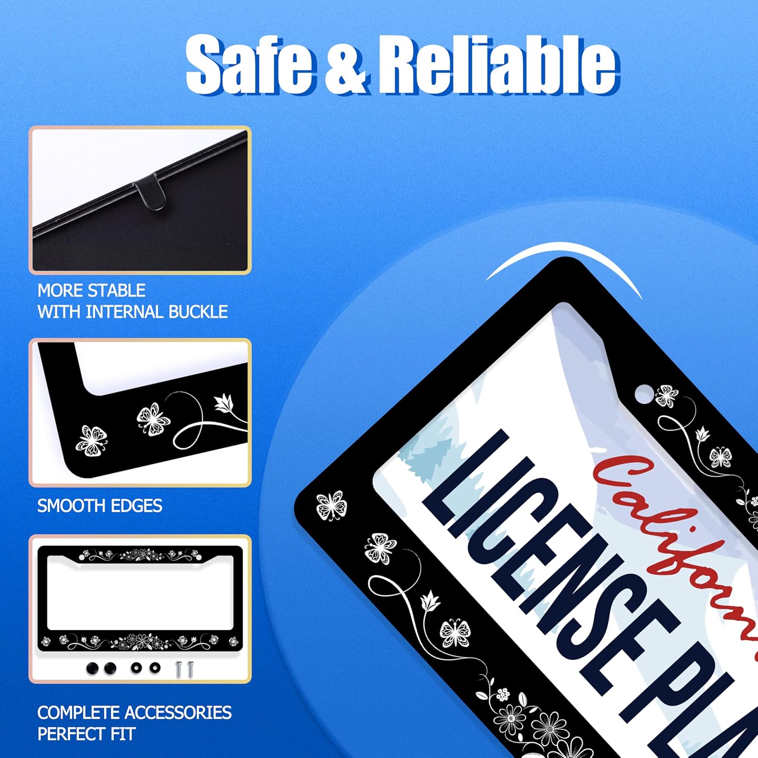 - Our license plate holder is perfect for most license plates, whether you park your car in the yard or travel outdoors, your license plate will stand out