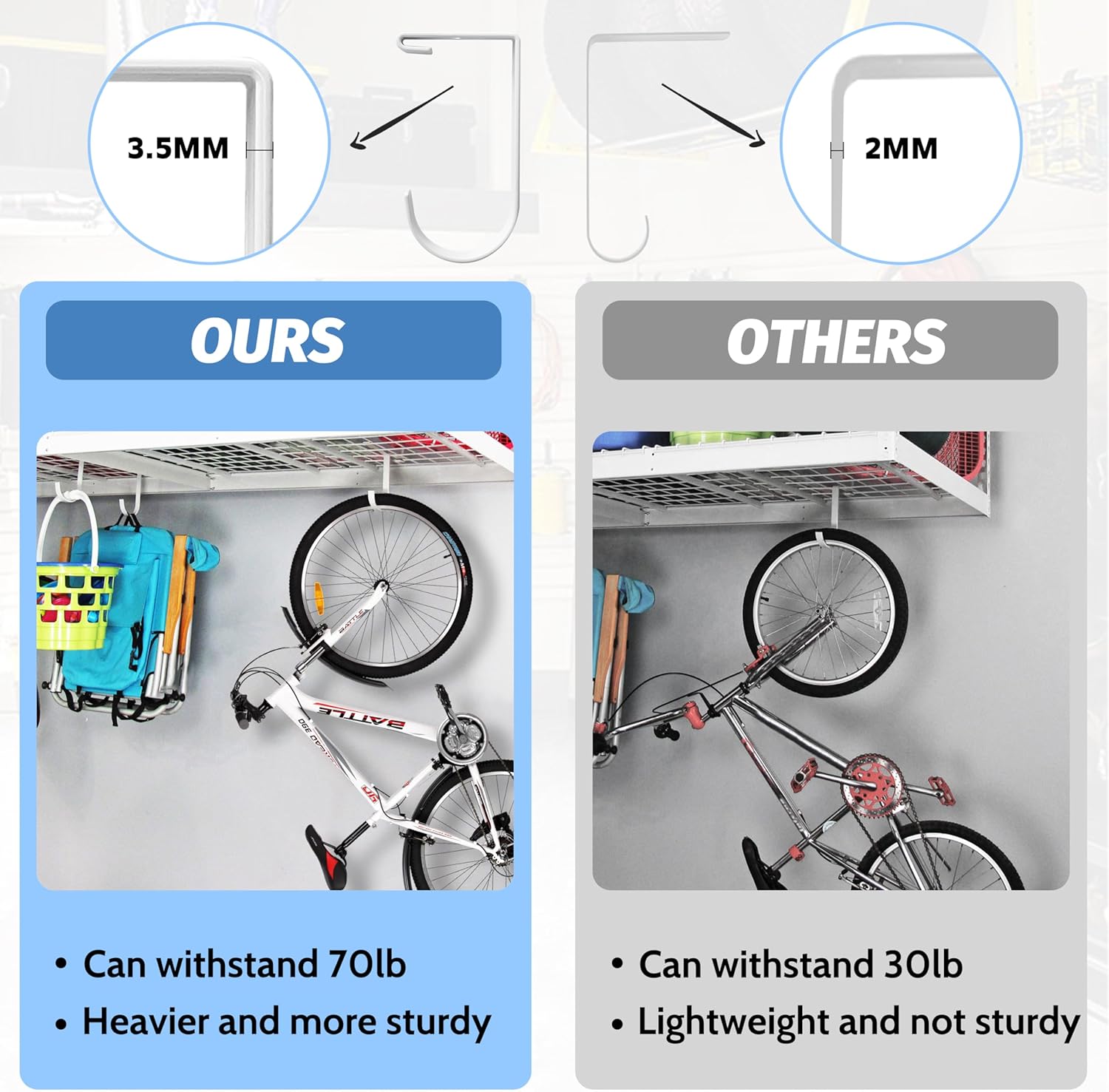 - Easy To Install: No tools required, hooks for bikes will attach to any wire rack or shelving unit
