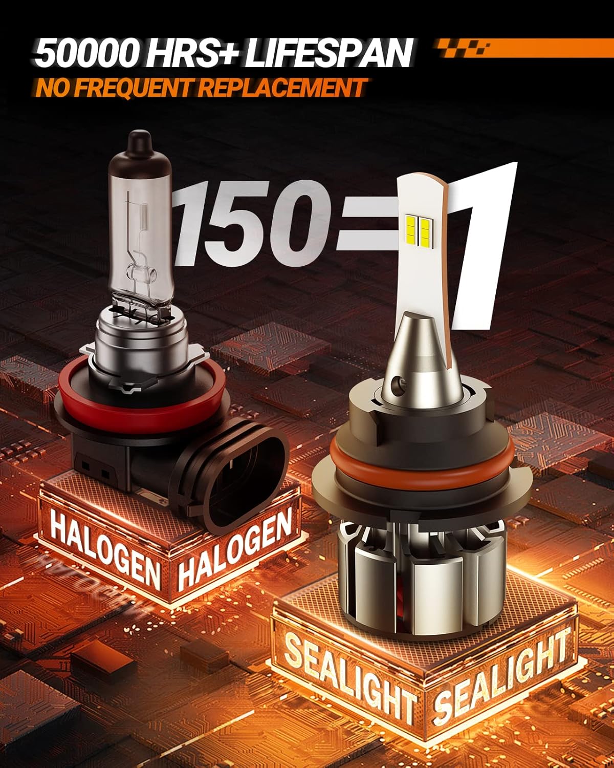 - Super 36000LM Brightness: SEALIGHT 9007 bulbs use double-sided prime enhanced chips to deliver up to 8X illumination of stock bulbs, providing clear vision for nighttime driving and earlier detection of obstacles ahead, giving you a safe and reliable lighting experience