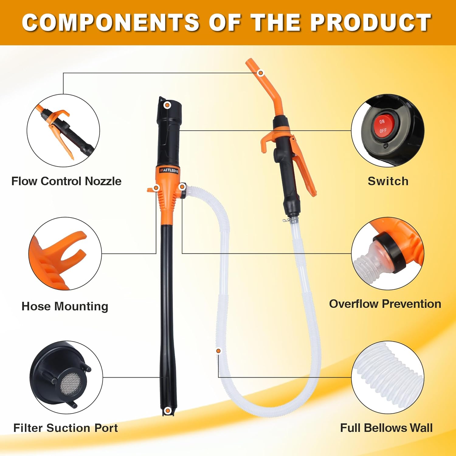 - COMPACT AND CONVENIENT: The siphon pump is lightweight and easy to transport, pumps up to 8 liters/2.2 gallons/9 quarts per minute, has a 3-foot delivery hose that reaches into the tank, and an impeller head with strainer to keep out contaminants