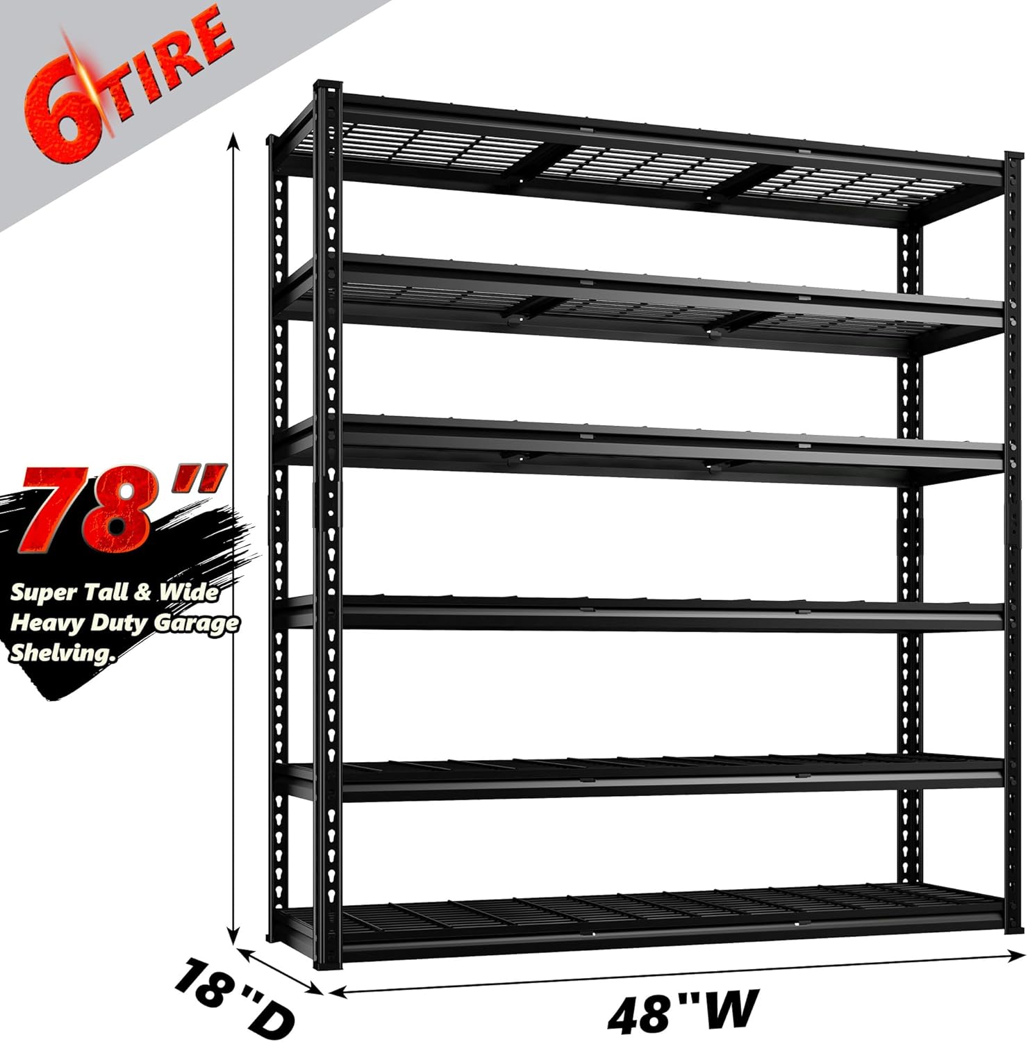 REIBII 3300LBS Garage Shelving 48" W Storage Shelves 6 Tier Garage Shelving Heavy Duty, Adjustable Metal Shelves for Warehouse, Basement, Storage, 48" W x 78" H x 18" D