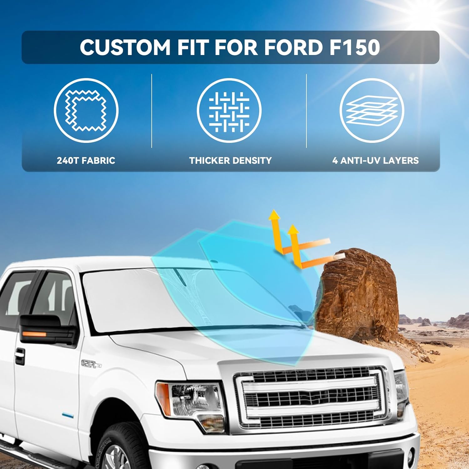 - 【Vehicle Specific 】You've spent too much time in the California sun, buy it now, Please don’t waste time,reject the heat, quality products - Sunshade windshield Custom for 2014 2013 2012 Ford f150.
