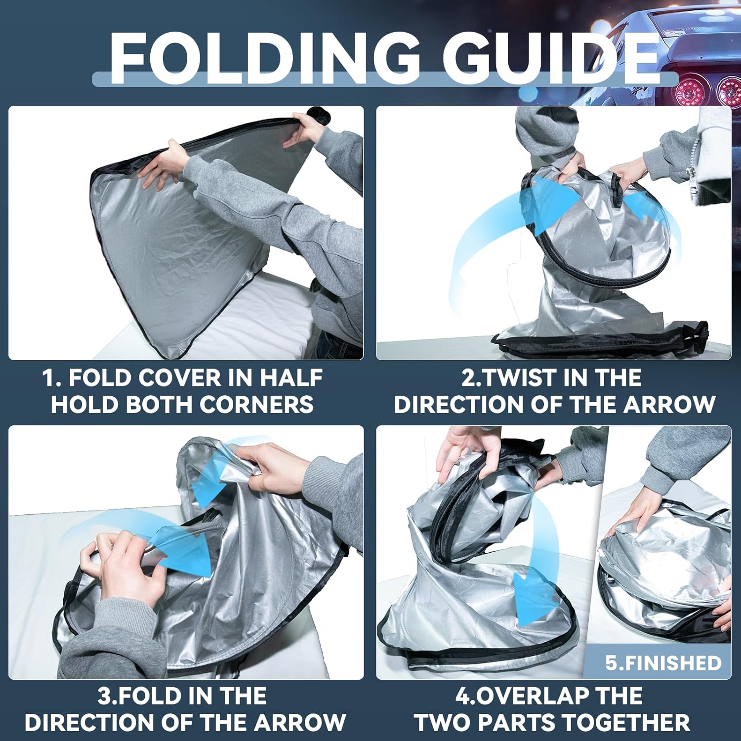 - 【UV Protection】The foldable windshield sun shade is made of high quality polyethylene (HDPE) microfiber,Silver reflective surface can reflect 99% of ultraviolet rays--great sun reflector.blocks heat & sun. Keeps your car cool.