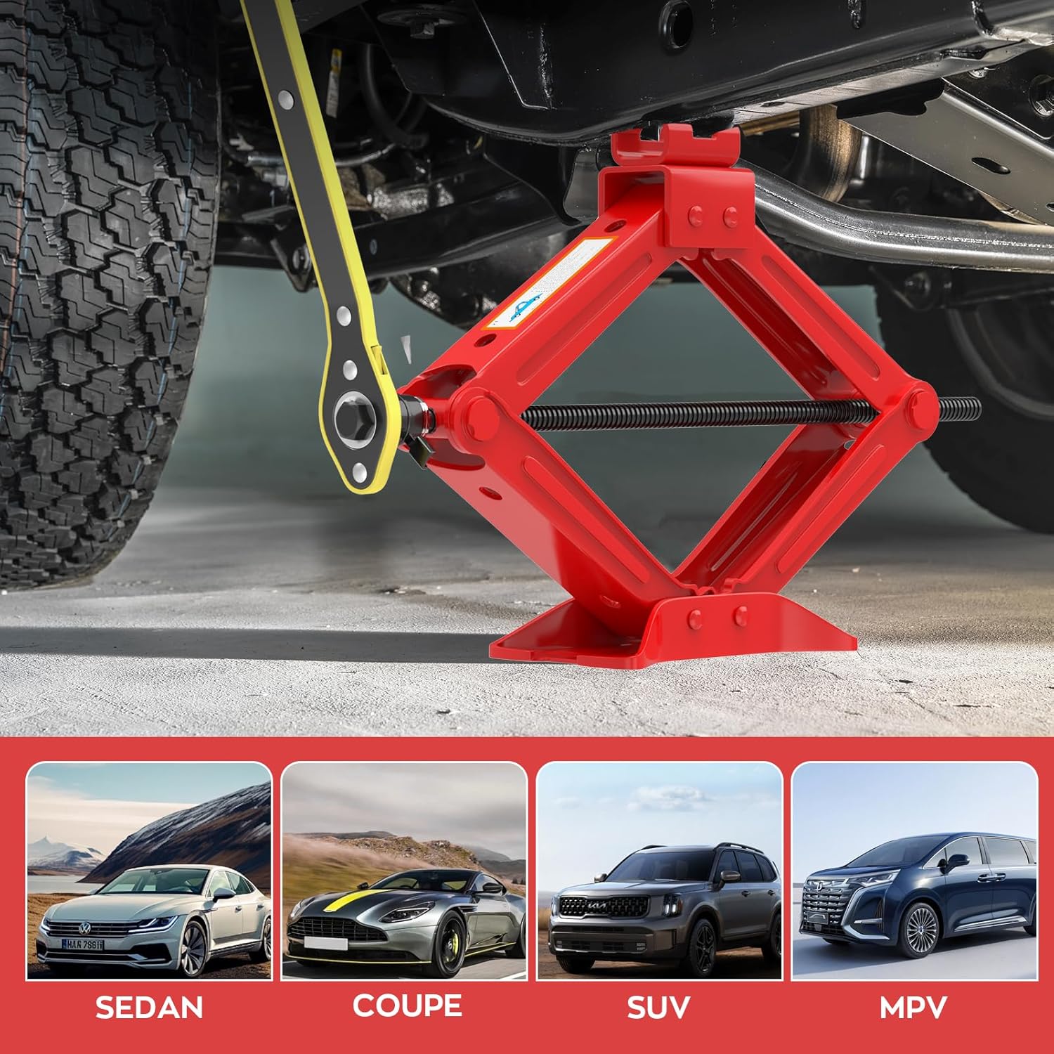 IMAYCC Car Jack Kit Scissor Jack for Car Spare Tire Changing Kit,Portable Tire Jack Repair Kit with Lug Wrench, Car Emergency Kit for Auto/SUV/MPV-2 Ton (4409 lbs) Red