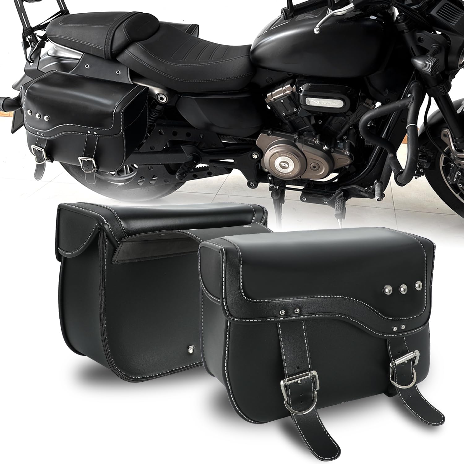 - Durable & High-Quality Material: The SUNPIE Leather Saddle Bags are crafted from premium synthetic leather, offering a perfect blend of durability and style. The material is designed to withstand wear and tear, ensuring long-lasting performance. While real leather provides a classic, luxurious look, the synthetic leather option is water-resistant and requires minimal maintenance, making it ideal for all-weather riding.