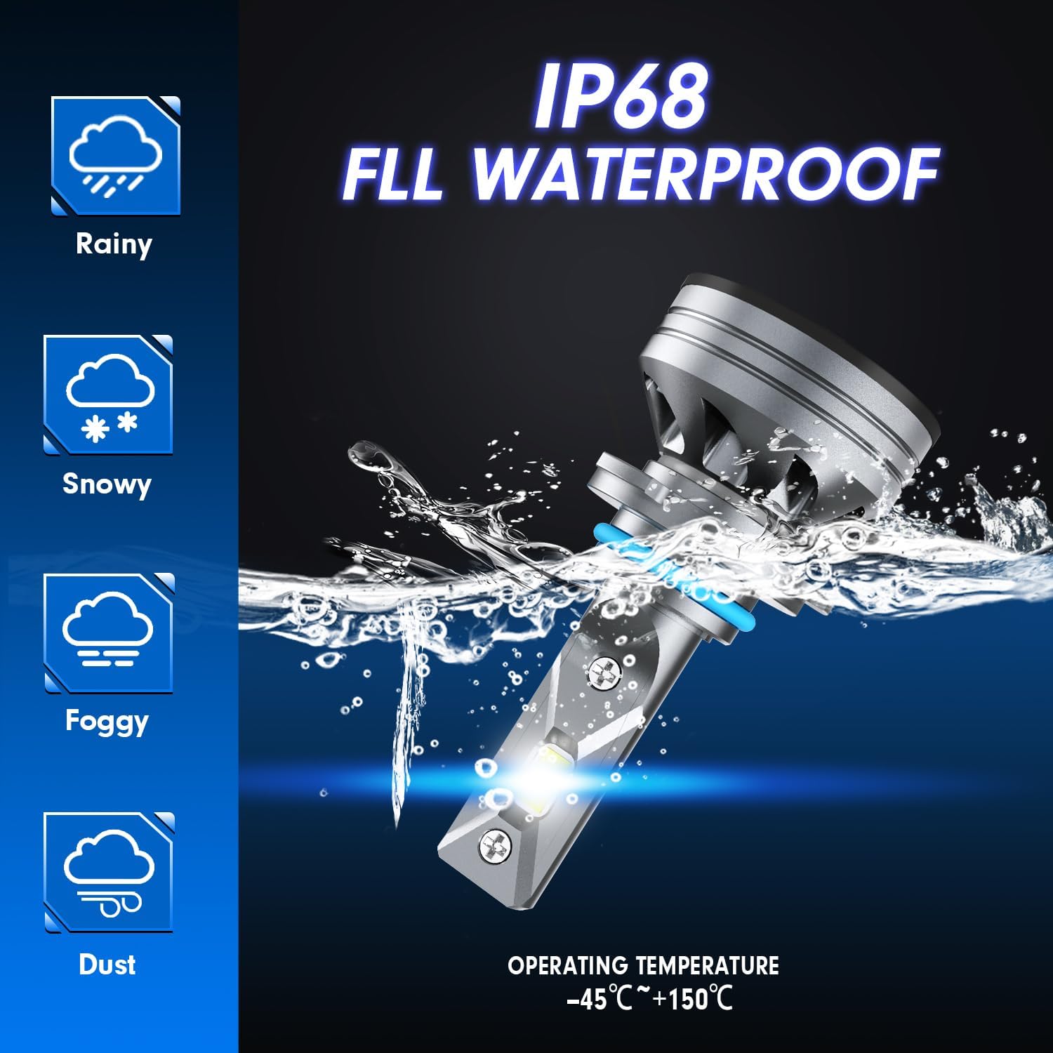- 【360°Adjustable Beam】The HB3 light adopts 360° adjustable locker ring to enable some models to finally obtain the best light pattern and has an IP68 waterproof design, which can that the vehicle works normally in bad weather such as heavy rain and heavy snow, ensuring your driving safety .