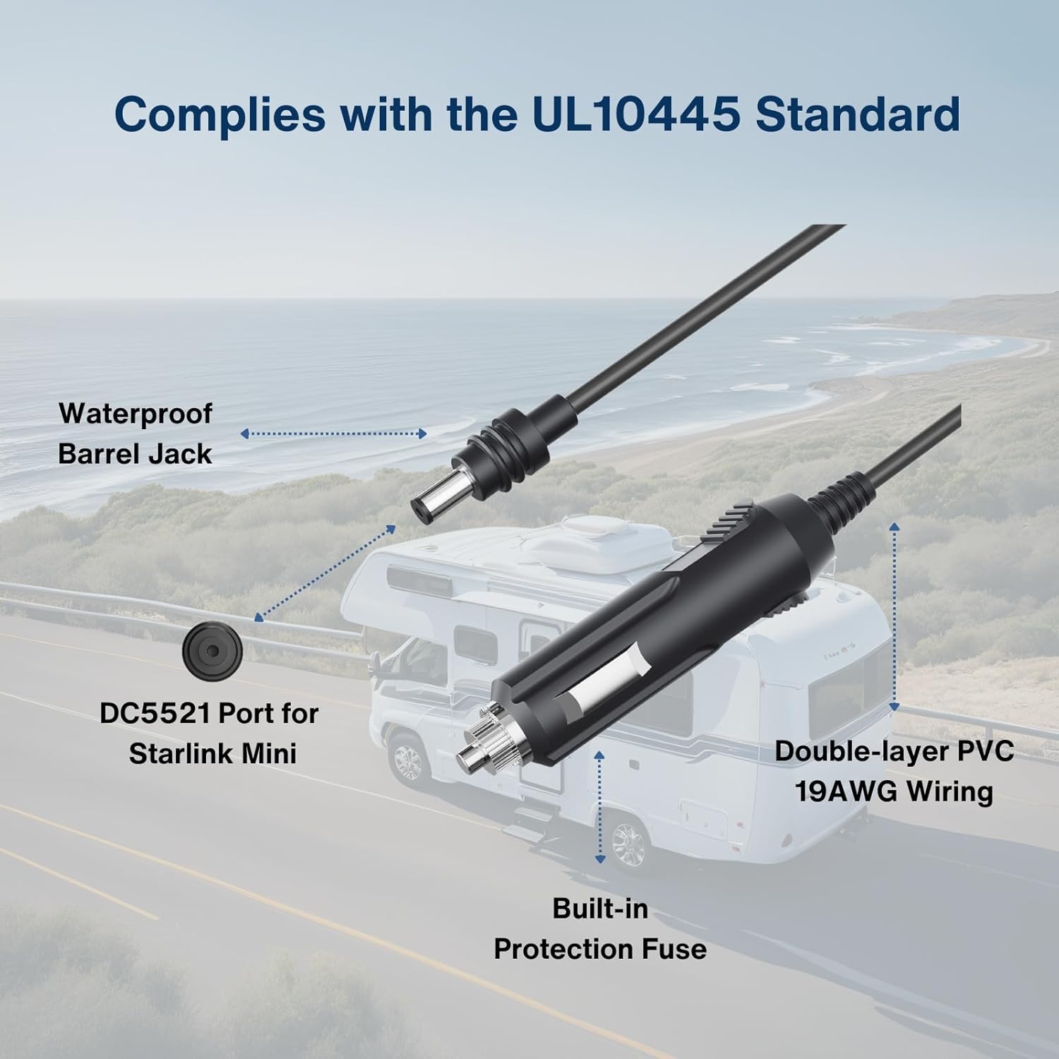- Built-in Protection: Features a high-quality car charger with a built-in fuse for overload, overheat and short-circuit protection, keeping your Starlink Mini safe during use.