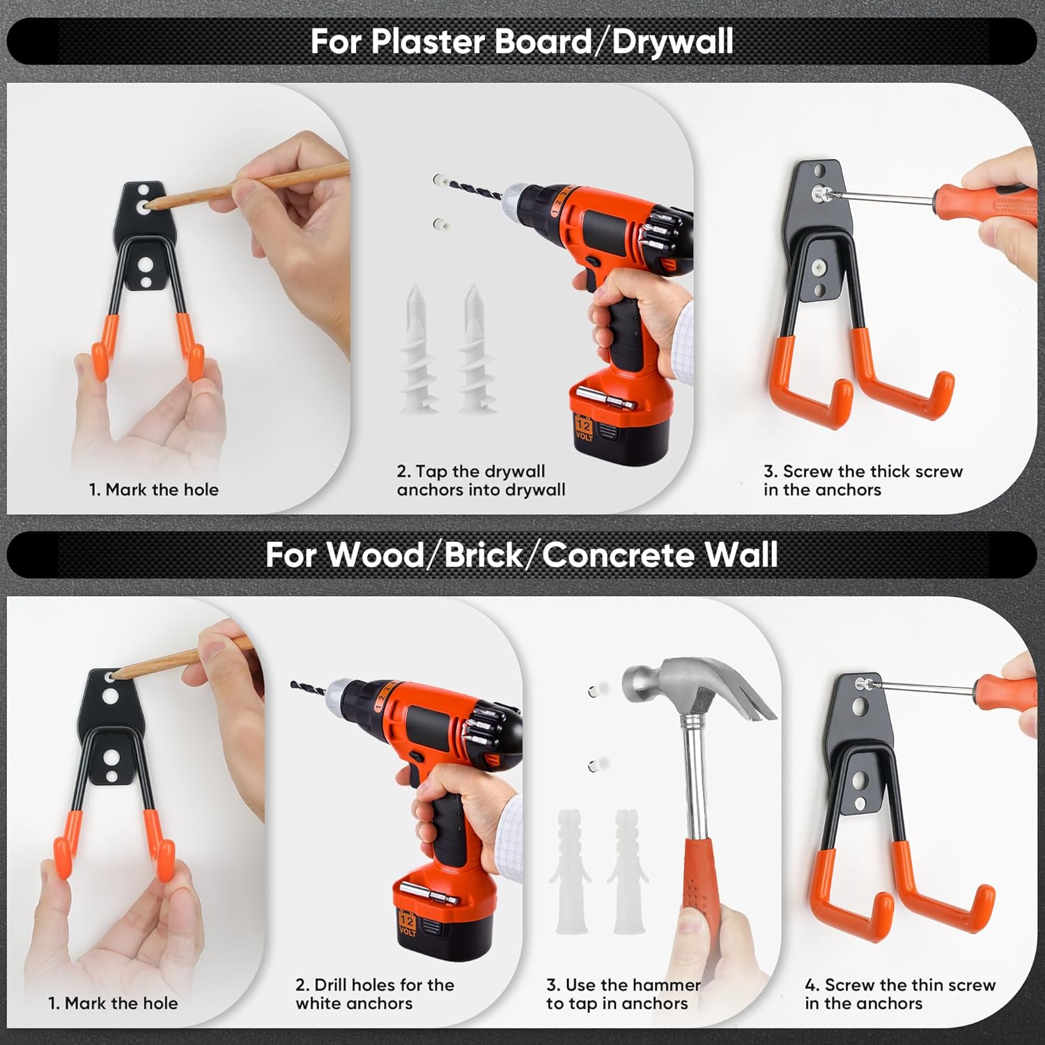 - Effortless Installation: We know many customers struggle with incorrect installation locations or want to move their garage hooks but often find themselves short on screws. That’s why Nacial provides ample screw sets—our 16-hook set includes 3*30 screws, 18-hook set features 3*34 screws. Each garage hook comes with 3 types of screws, and with just a drill or screwdriver, you can effortlessly install them on drywall, wood, concrete, or brick walls. Enjoy quick and easy organization with Nacial!