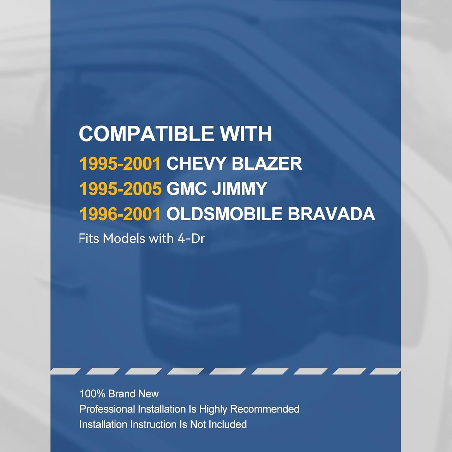 - Vehicle Compatibility - Set of 4 Window Visors Compatible With 95-01 Chevy Blazer, 95-05 GMC Jimmy, 96-01 Oldsmobile Bravada.