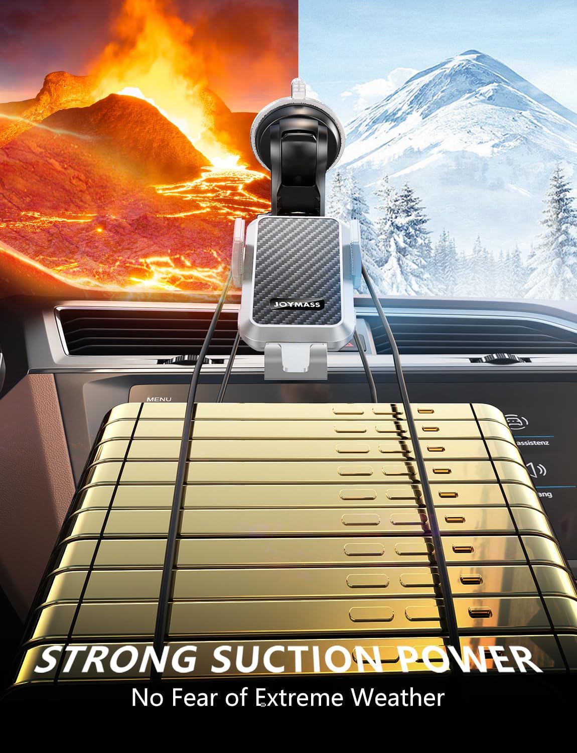 - 【STRONG SUCTION POWER】After several improvements and tests, cell phone car mount firmly grips and stands up to severe shaking from rough, washboard infested dirt roads. Even in the scorching sun, the suction has remained rock-solid, keeping the holder firmly in place. Suction cup can be reused and restored by simply rinsing under warm water and air drying