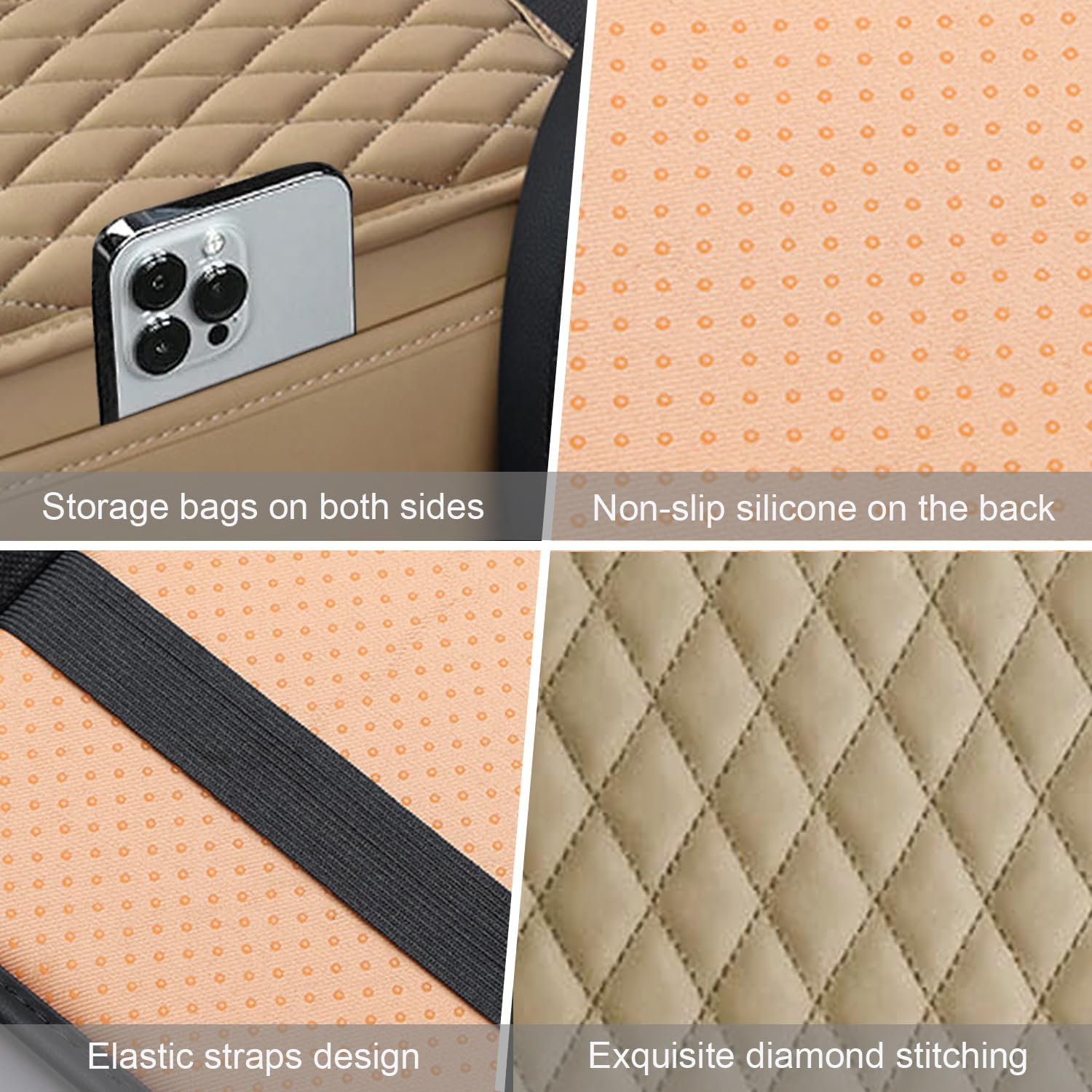 Car Center Console Cover, Upgraded Leather Armrest Seat Box Cover with 2 Storage Bags, Universal Waterproof Car Armrest Cover Cushion Comfortable Car Decor Accessories for Most Vehicles (Beige)