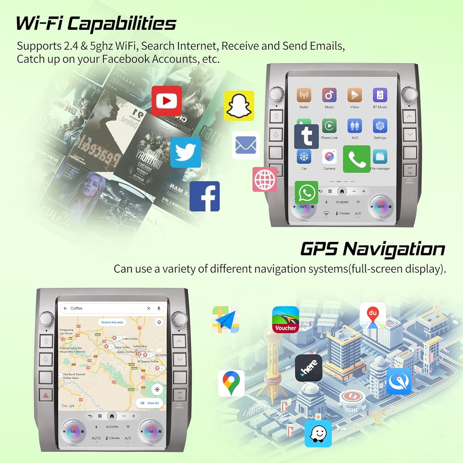 - 【𝐂𝐚𝐫 𝐒𝐭𝐞𝐫𝐞𝐨 𝐅𝐢𝐭 𝐟𝐨𝐫 𝐓𝐨𝐲𝐨𝐭𝐚 𝐓𝐮𝐧𝐝𝐫𝐚】Designed exclusively for Toyota Tundra 2014-2020 models.It comes with a Plug-and-Play installation as well! It even retains the Factory steering wheel controls and USB ports. Experience top-notch in-car entertainment and superior performance with this high-quality car radio.