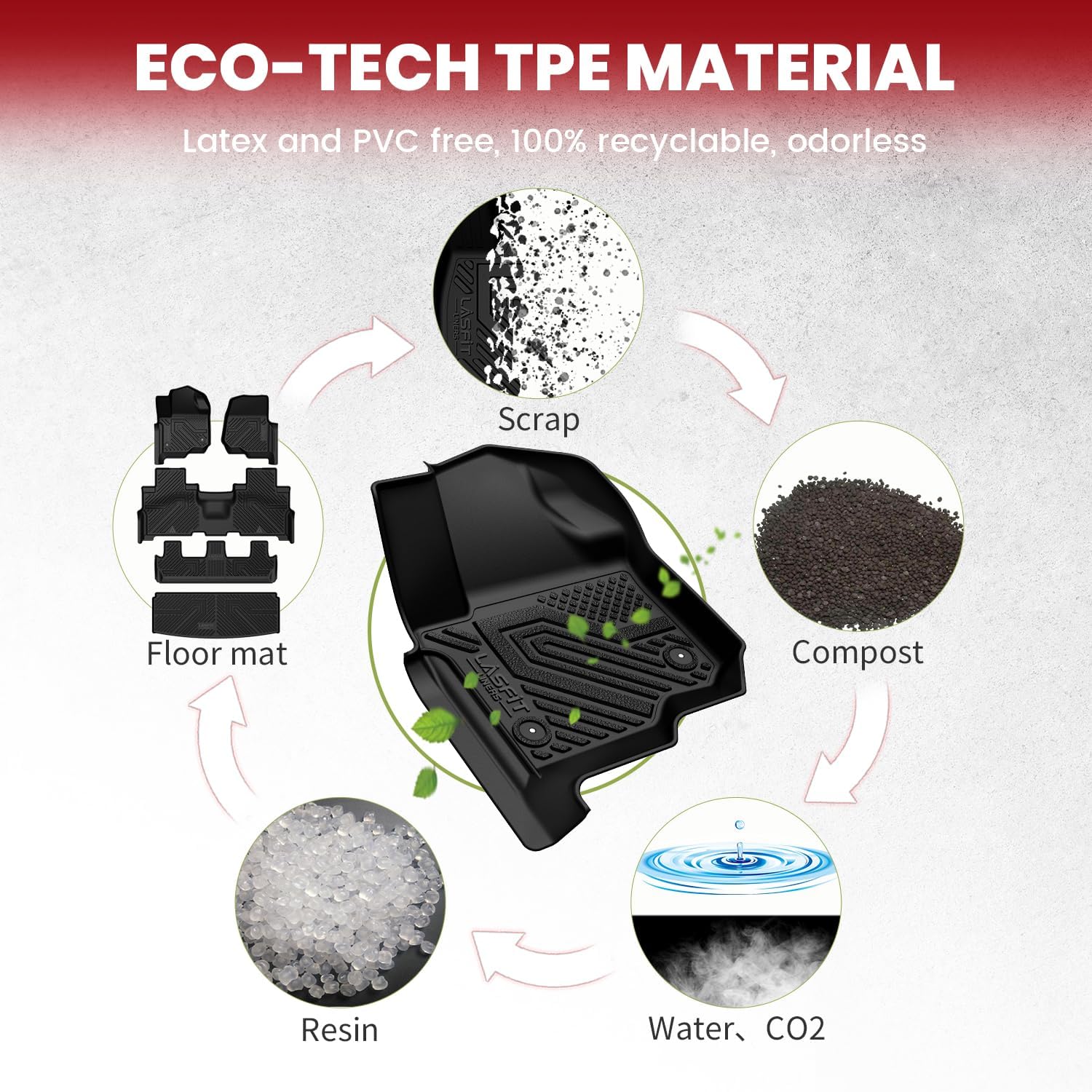- ✅【ENVIRONMENT FRIENDLY】LASFIT Expedition car liners are made of TPE material. The TPE material not only has excellent hand feeling and high wear resistance but also does not deform or crack even in hot and cold weather, protecting your car floor for a long time. Give your family a safer and more comfortable environment in the car