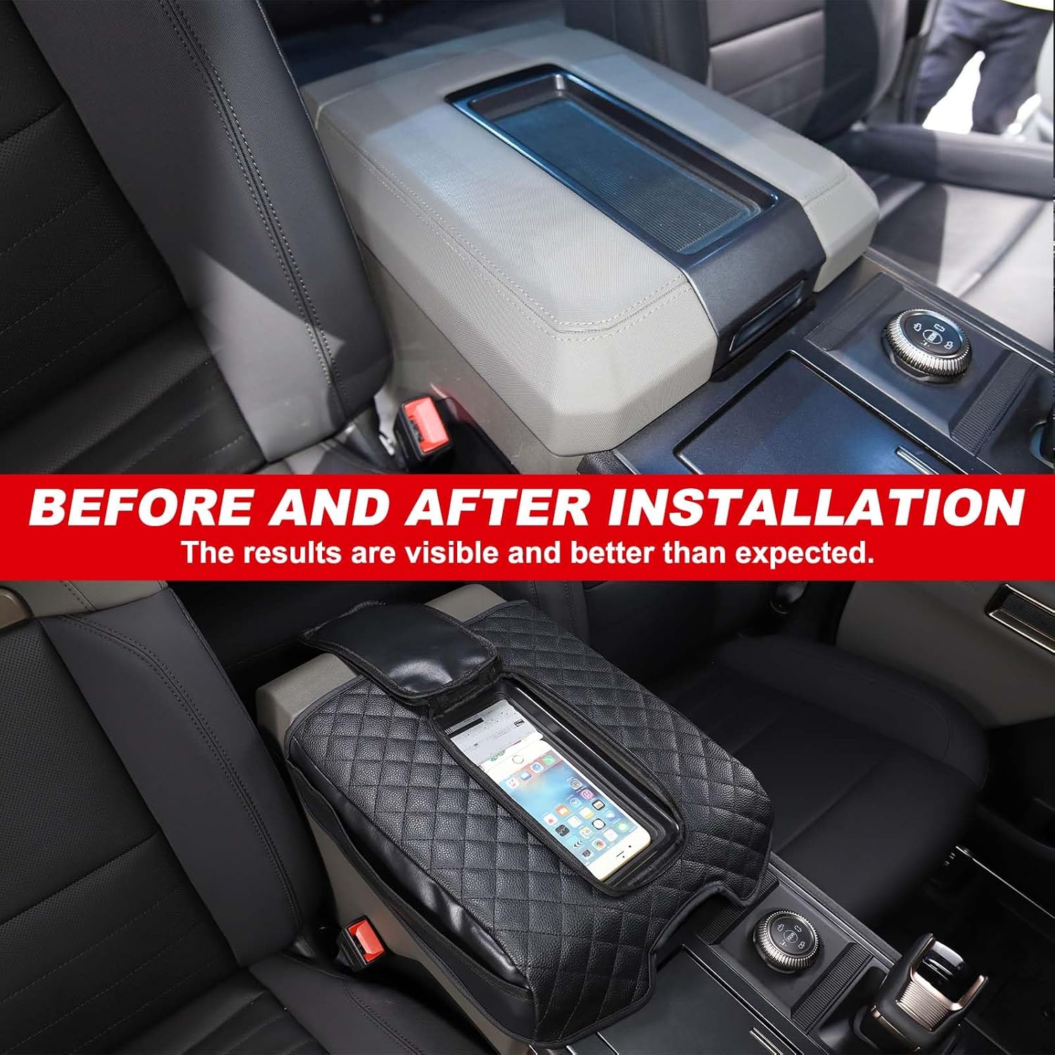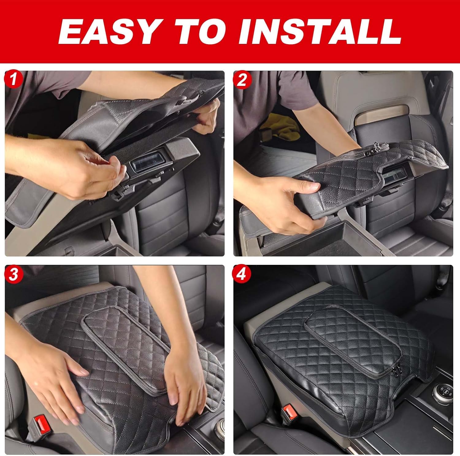 - 🚙Non-slip design:Double elasticated elastic band design at the bottom, easy to install, no tools required. Fixed directly on the car centre console, no need to worry that the armrest cover can't be firmly fixed on the armrest box, and the pad won't move from side to side or fall off during driving.