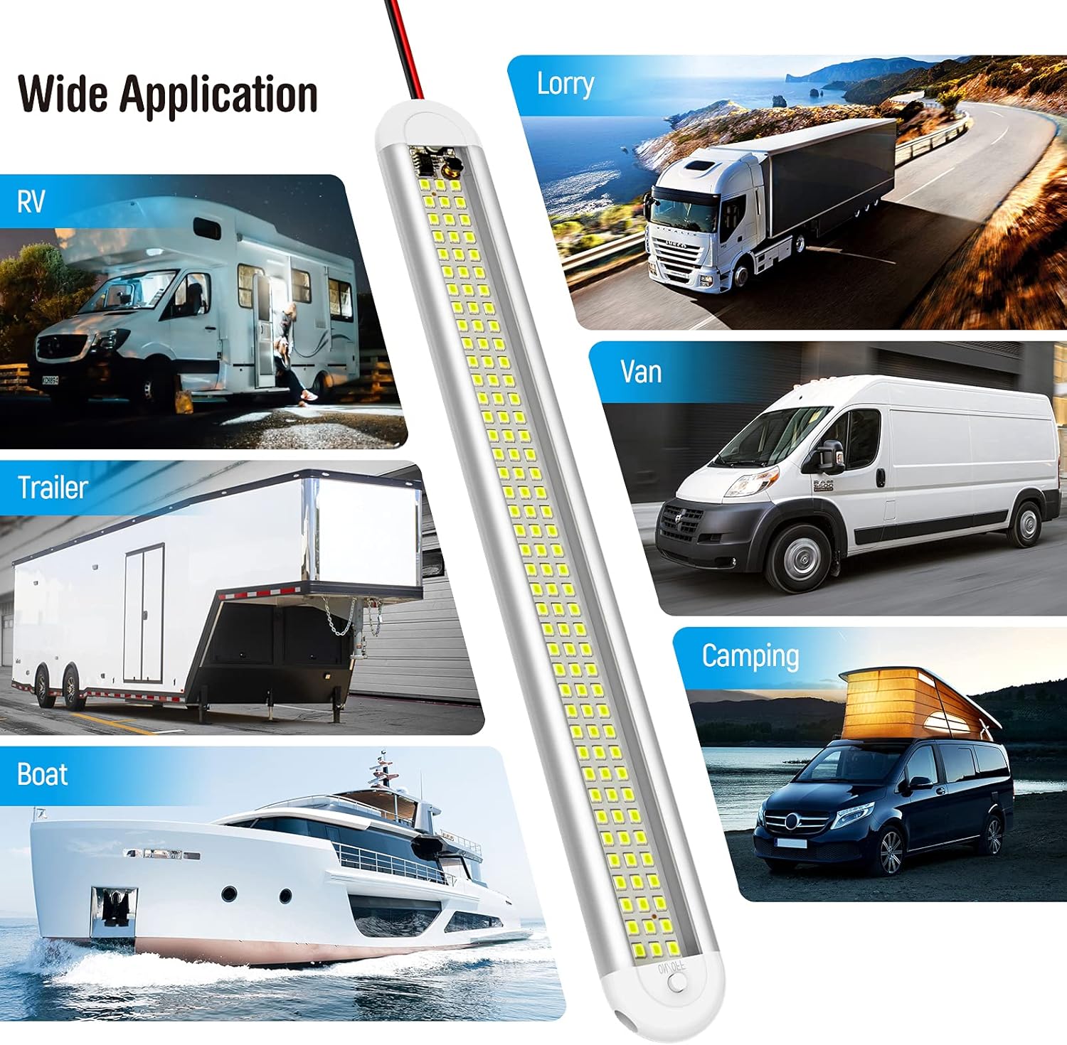 - 【Wide Application】 - The flexible design ensures this 12v led lights installed tidily and suitable for various vehicles like cars, pickup trucks, SUVs, RV and etc. It can also be widely applied as light source for emergency, camping, car maintenance, working, etc. 12V voltage enables this light bar to easily fit in any vehicle, automobile, home, office, cabinet, and commercial spaces and its wide lighting range provides abundant lighting for reading, working and video conference.