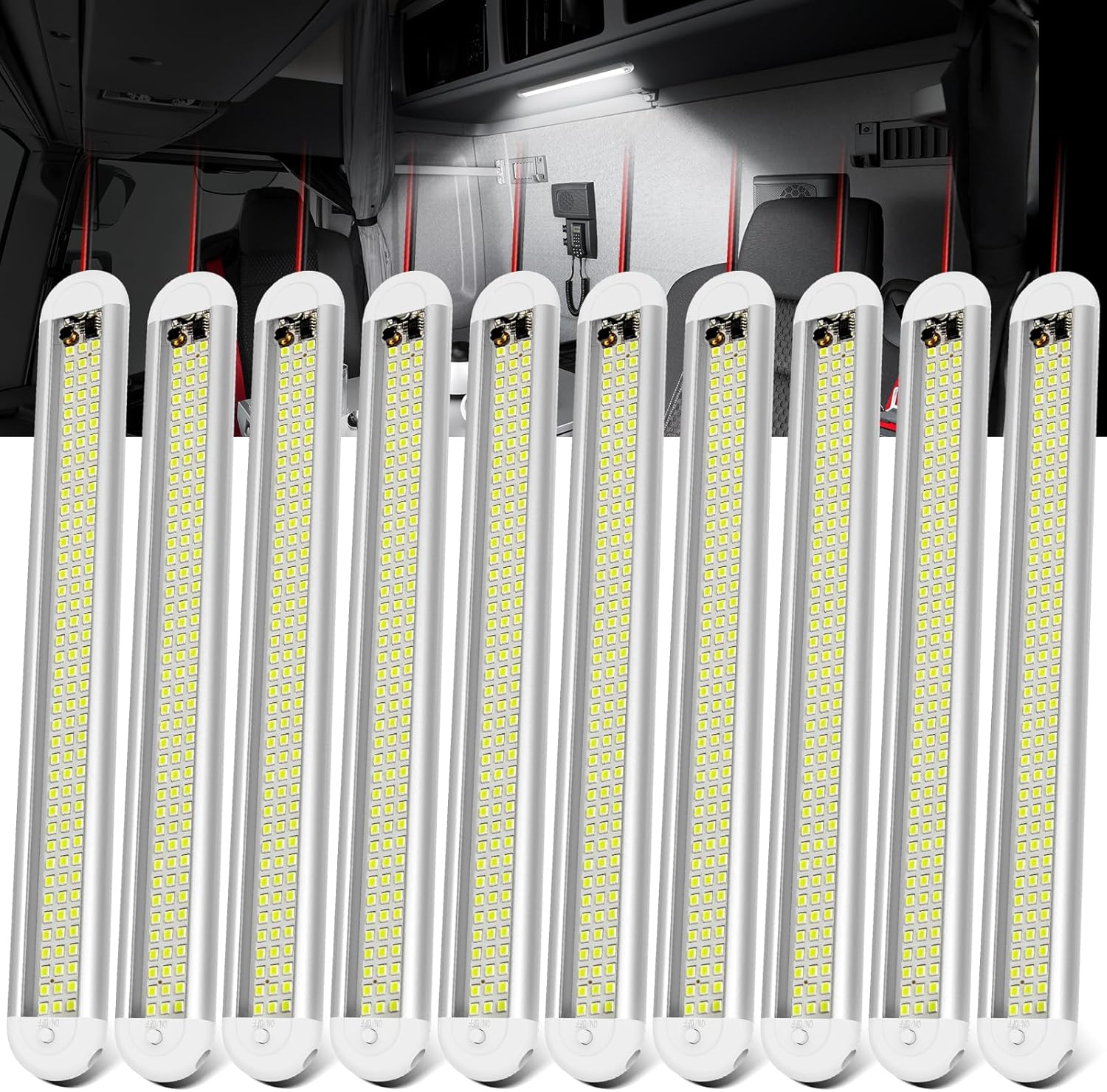 12v LED Interior Light Bar,CT CAPETRONIX 120LEDs 1500LM 8W DC 12 Volt led Strip Lights with ON/Off Switch,for Enclosed Cargo Trailer, Car RV Van Truck Lorry Camper Boat Caravan Motorhome (10Pack)