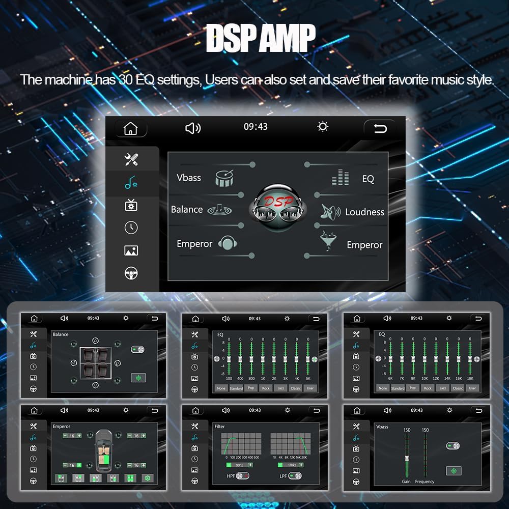 - 【 DSP 30-Band&Steering wheel control】:This unit has been upgraded with a DSP function to make the sound in the car sound more comfortable, and there are also 30-band EQ settings, allowing you to adjust the texture of the sound to enjoy a better audio-visual experience. Steering wheel control: When you connect the steering wheel control, let you in the steering wheel buttons to control the car unit, such as controlling listen to songs and so on.