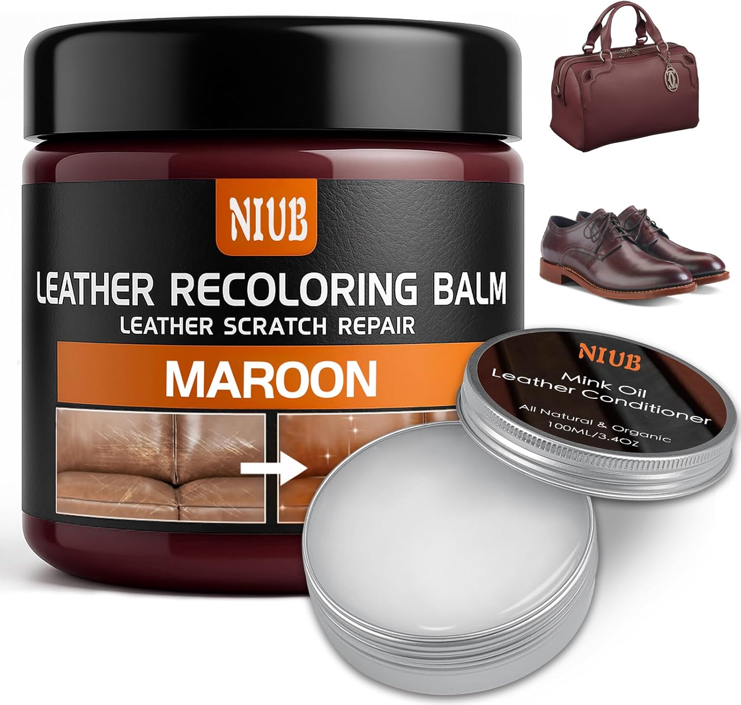 Leather Recoloring Balm Leather Color Restorer Scratch Repair Leather Paint for Furniture Couches Car Seats Shoes Bags Leather Dye and Scratched Leather with Leather Conditioner - Maroon
