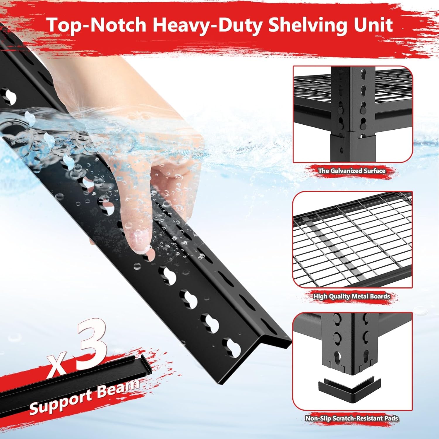 - 3300LBS Heavy Duty Capacity: MODCART's heavy-duty garage shelving is built with robust steel columns, supporting up to 660 lbs per shelf for a total of 3300 lbs. it offers reliable organization for your garage, kitchen, or laundry room