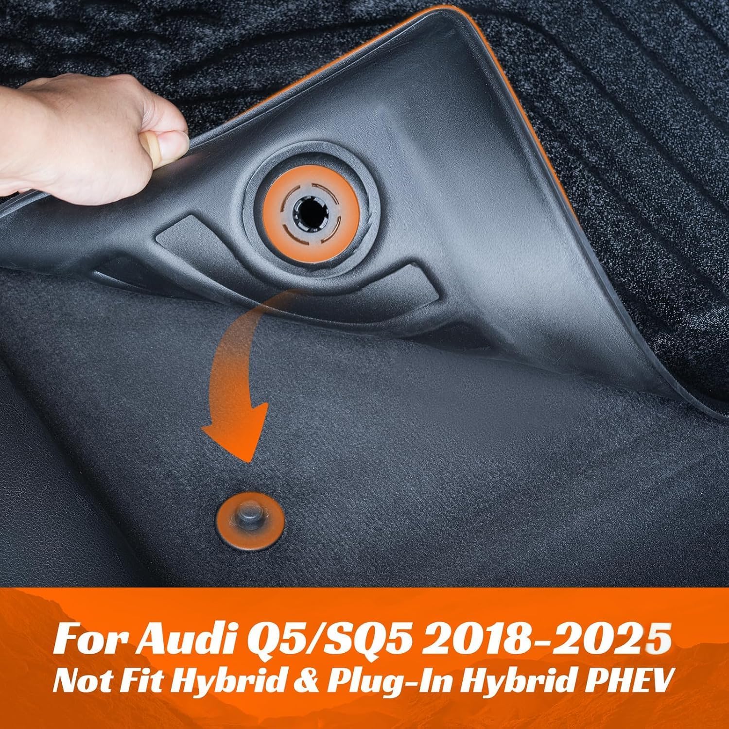 - 【Custom Fit】Designed to fit for Audi Q5/SQ5 from 2018, 2019, 2020, 2021, 2022, 2023, 2024, and 2025. This 4-piece set includes driver side mat, passenger mat, rear seat mat, and cargo mat. These all weather car floor mats and rubber-like floor mats are custom fit for your vehicle with no trimming needed.