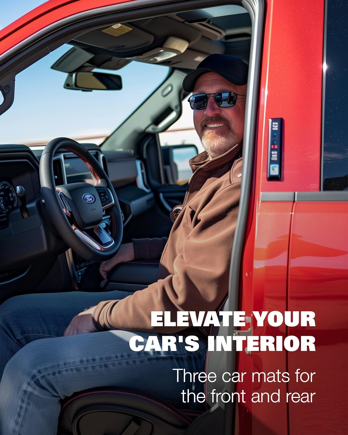 Floor Mats for Ford F150 - Tailored Fit for 2015-2025 Ford F-150 SuperCrew Cab Lightning Truck - Set of 3 - Anti-Slip Backing - 34oz Heavy Duty Carpet Mat - All Weather Car Liner