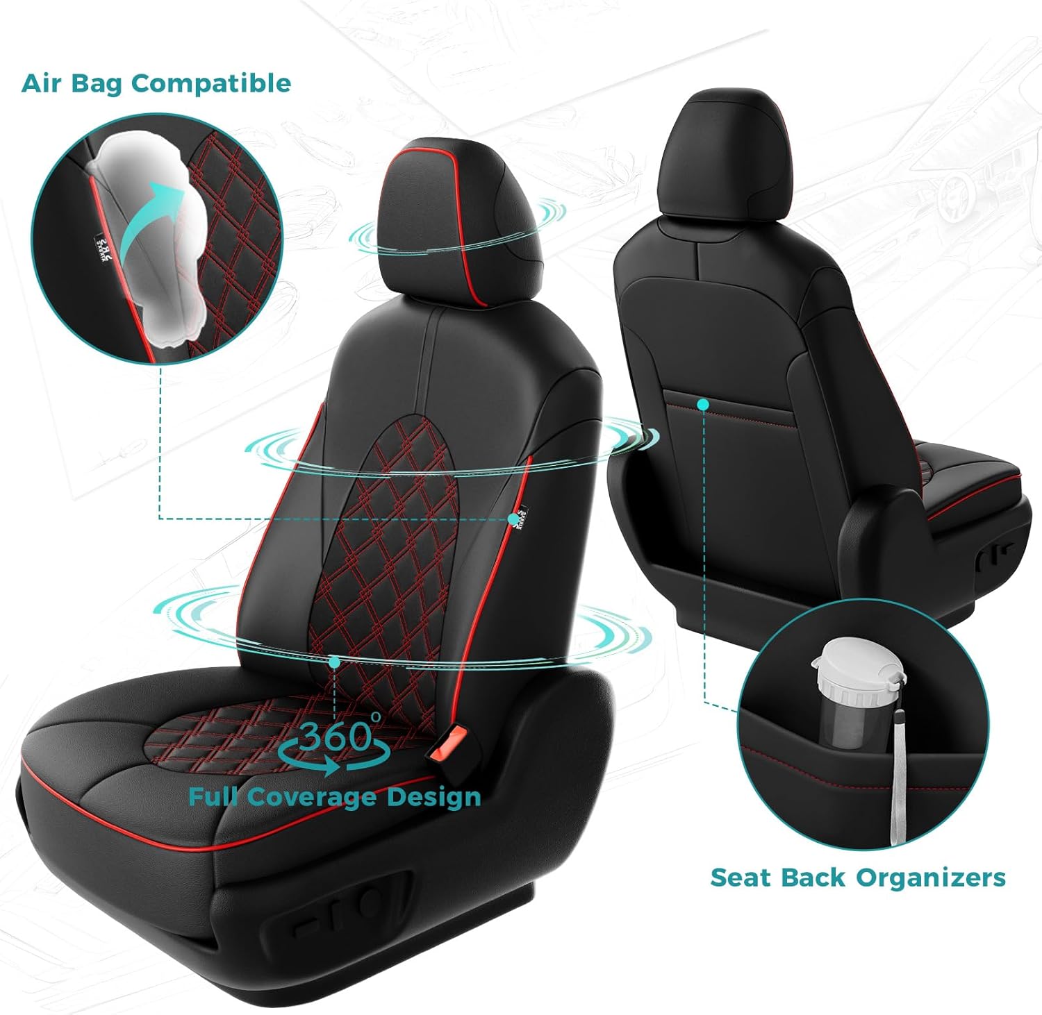 - 【Maintain Existing Functionality】: Tailored to fit snugly all details of car seat covers for Toyota camry and ensure the full function, not affecting at all the use of airbag, armrests, safety belt, child seats and seat adjustments. full wrap front car seat covers come with seat back organizer for improved user convenience.