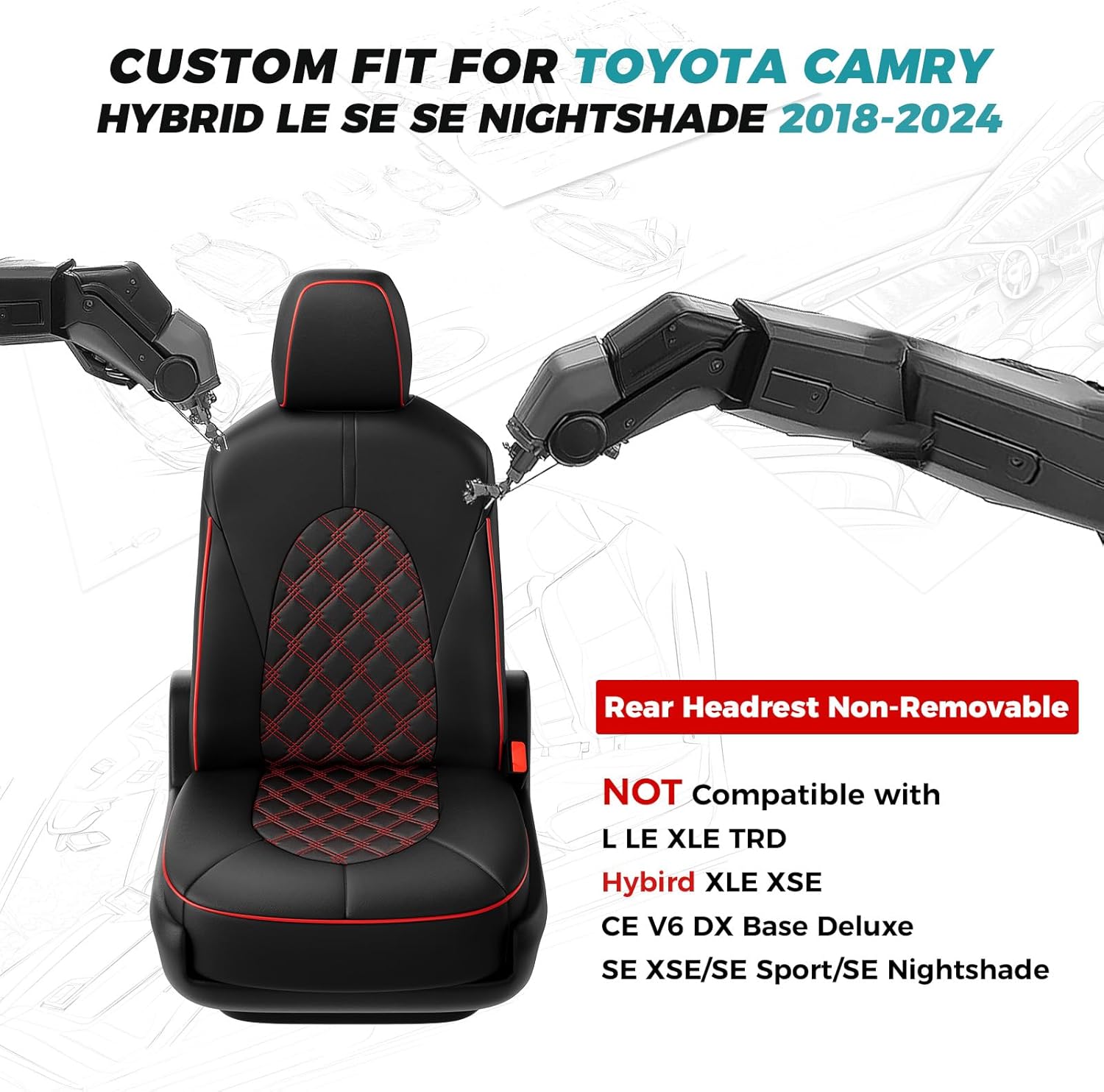 - 【Custom Car Seat Covers 1:1】: Precisely cut and custom tailored to camry seat covers for a glove-like fit. Exclusively fit for Toyota Camry Seat Covers Hybrid LE SE 2018 2019 2020 2021 2022 2023 2024.