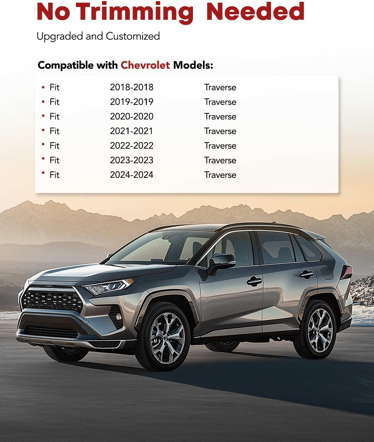 - Perfect Fitment: YHTAUTO trunk mat are custom-designed to Compatible with Chevrolet Traverse 2018-2024. Advanced 3D scanning technology ensures a perfect fit in with your vehicle, providing excellent protection for every inch of your vehicle's floor