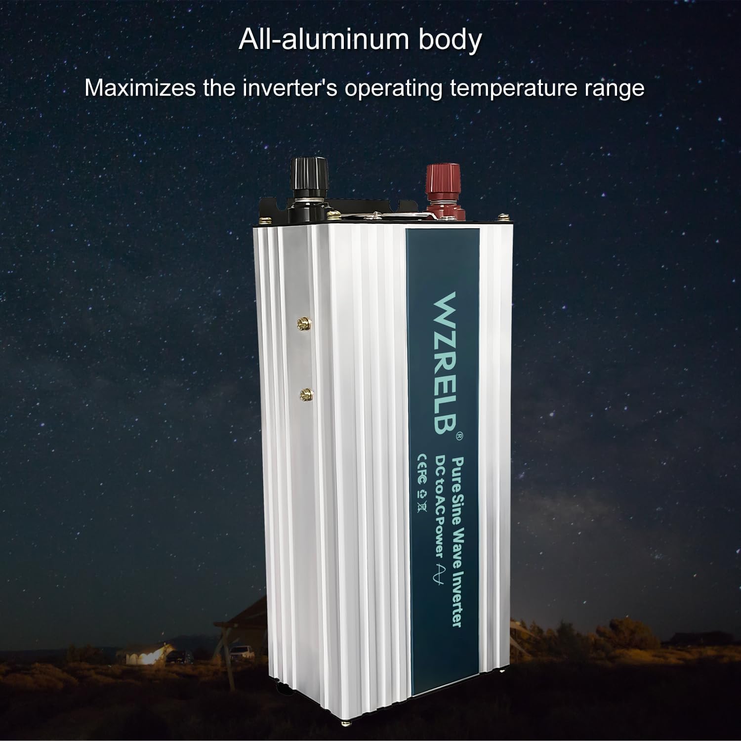 WZRELB 800W Pure Sine Wave Inverter 12V DC to 110V 120V AC,Car Power Inverter with Dual AC Outlets, LED Display,Off-Grid Portable Power Converter for Home, RV, Truck, Camping