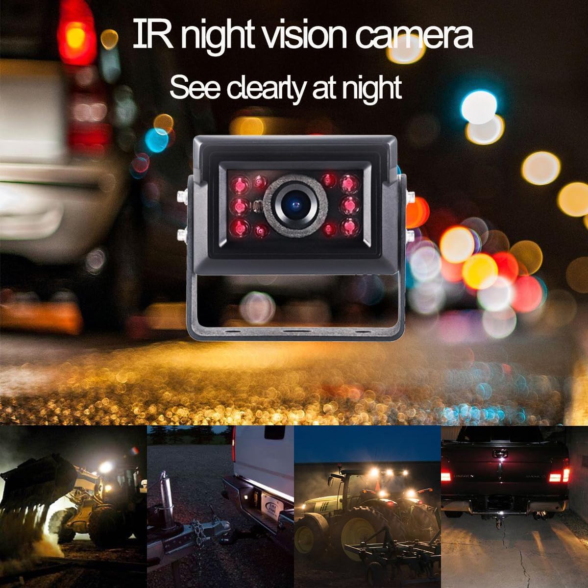 - Application:A performance enhanced ahd 1080P wired one camera kit with automotive grade chipset. For its high vibration-proof rating of 10G and wide power input range DC12-24V, it is suitable for large vehicles, such as buses, box trucks, pickup trucks, garbage trucks, flatbed trucks, dump trucks, street sweeper trucks, refrigerator trucks, motor homes, vans, skid steers, farm tractors, combines, cotton pickers, crop sprayers, snow plows, forklifts, excavators, heavy equipments,etc.