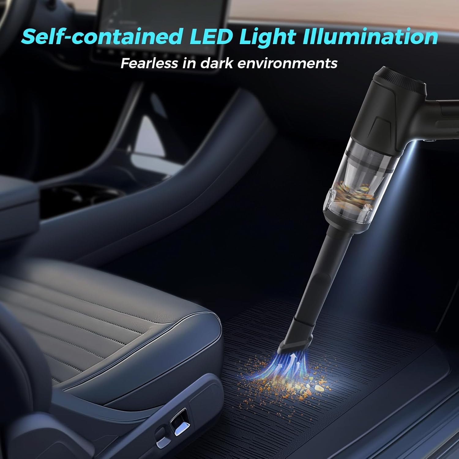 - LED LIGHT DUST REMOVAL:The car vacuum portable cordless is equipped with LED lights, whose lighting technology can detect particles and dust that you normally cannot see enabling you to clean in dark environments or at night. You will not miss any dirt