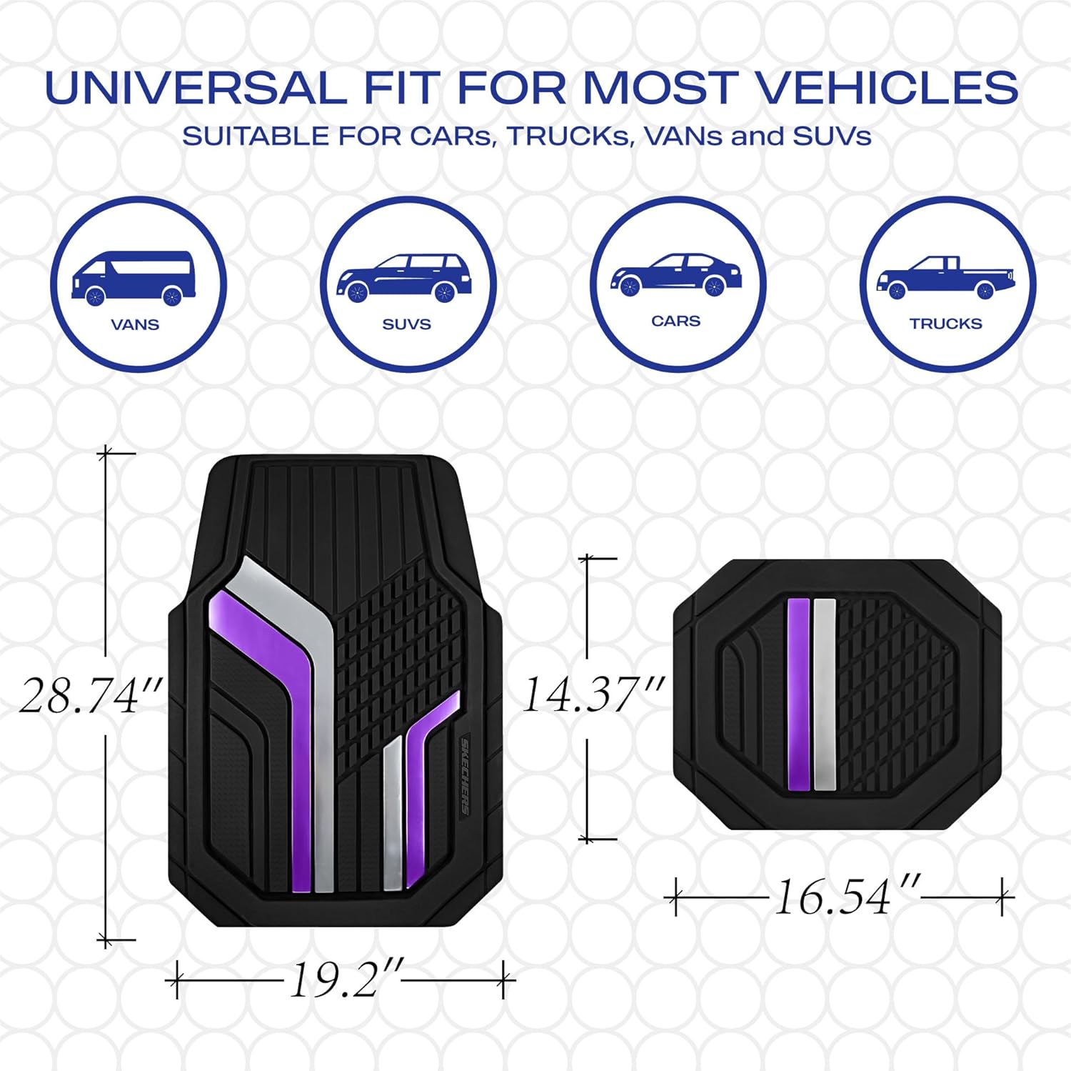 Skechers Heavy Duty Rubber Car Floor Mats,Dual Color Design Floor Mats,All Weather Car Mats,Waterproof Trim to Fit Universal Floor Car Accessories,Automotive Floor Mats for Cars Trucks Suvs,Purple