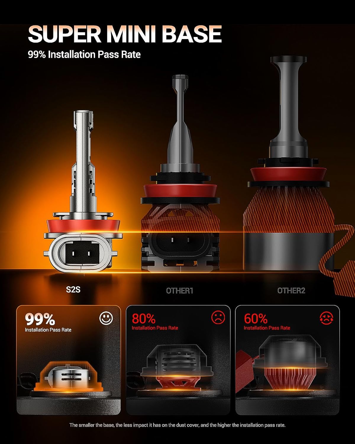 - Universal Compatibility: These S2S fog bulbs are designed to fit 99% of vehicles with built-in Canbus decoder that ensure no additional expense or concerns about flashing or failure.