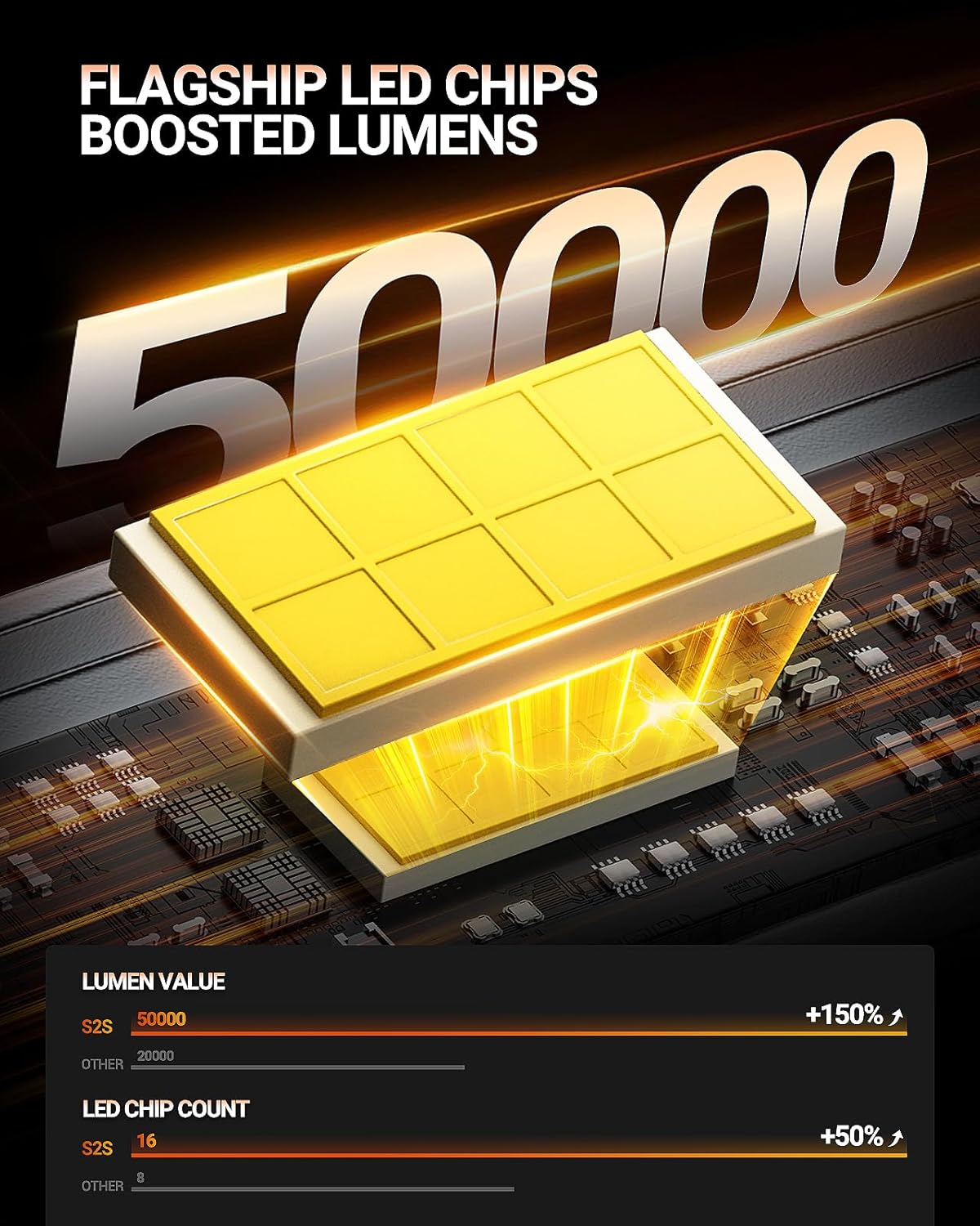 - 50000 Lumen Illumination: With a 2025 upgraded chip and 16 lamp beads, our bulbs deliver a bright 50000 Lumens, providing clear visibility and enhancing safety during nighttime driving.